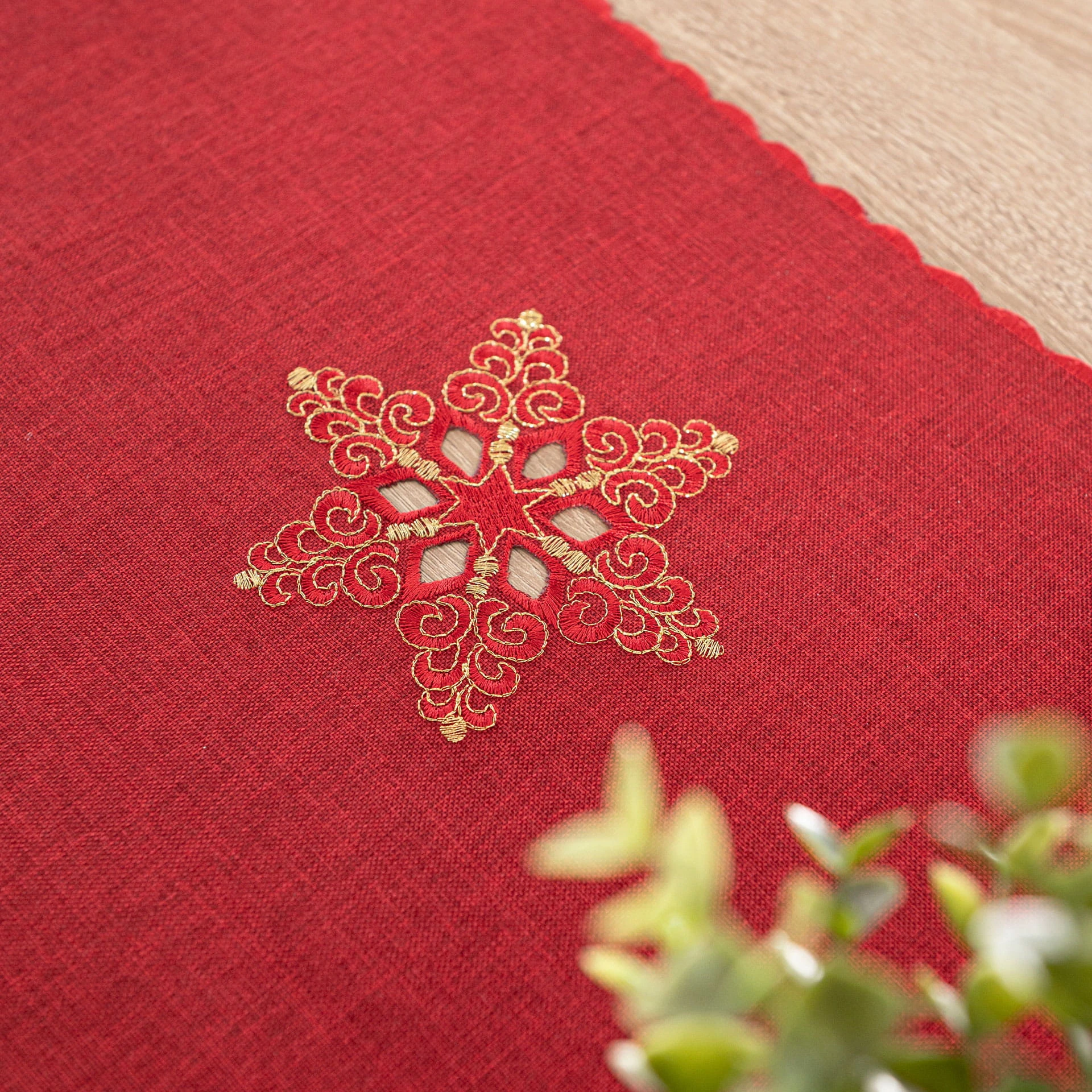 BŁYSZCZĄCE ŚNIEŻYNKI Bieżnik z haftem, szerokość 40cm x wysokość 140cm, kolor czerwony