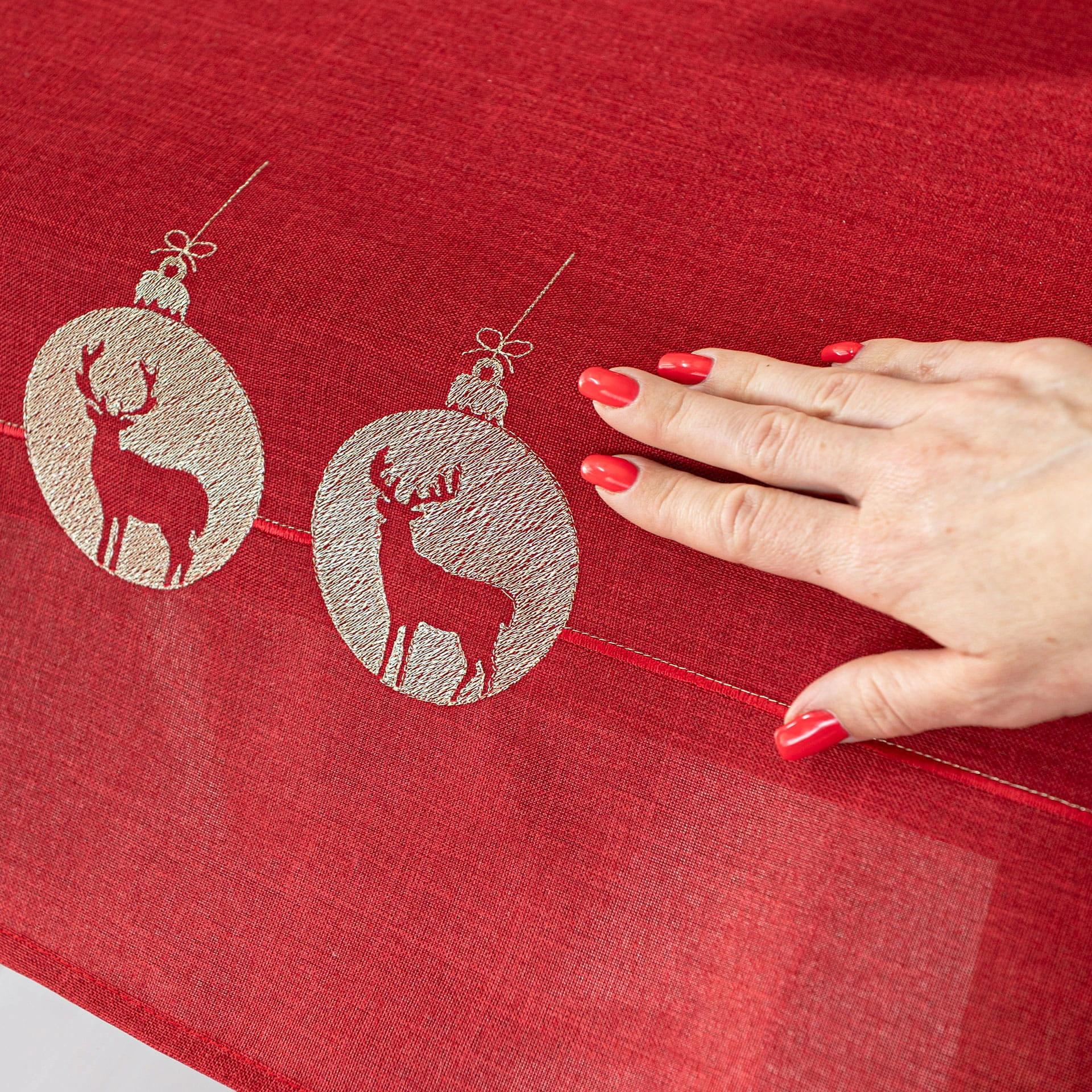 BŁYSZCZĄCY RENIFER Bieżnik z haftem, szerokość 24cm x wysokość 85cm, kolor czerwony