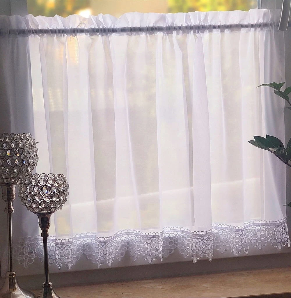 Stylowa zazdrostka do kuchni - biała, wykonana z najwyższej jakości woalu Premium. Ta piękna krótka firana jest nie tylko funkcjonalnym elementem, ale także subtelnie podkreśli charakter Twojej kuchni.
