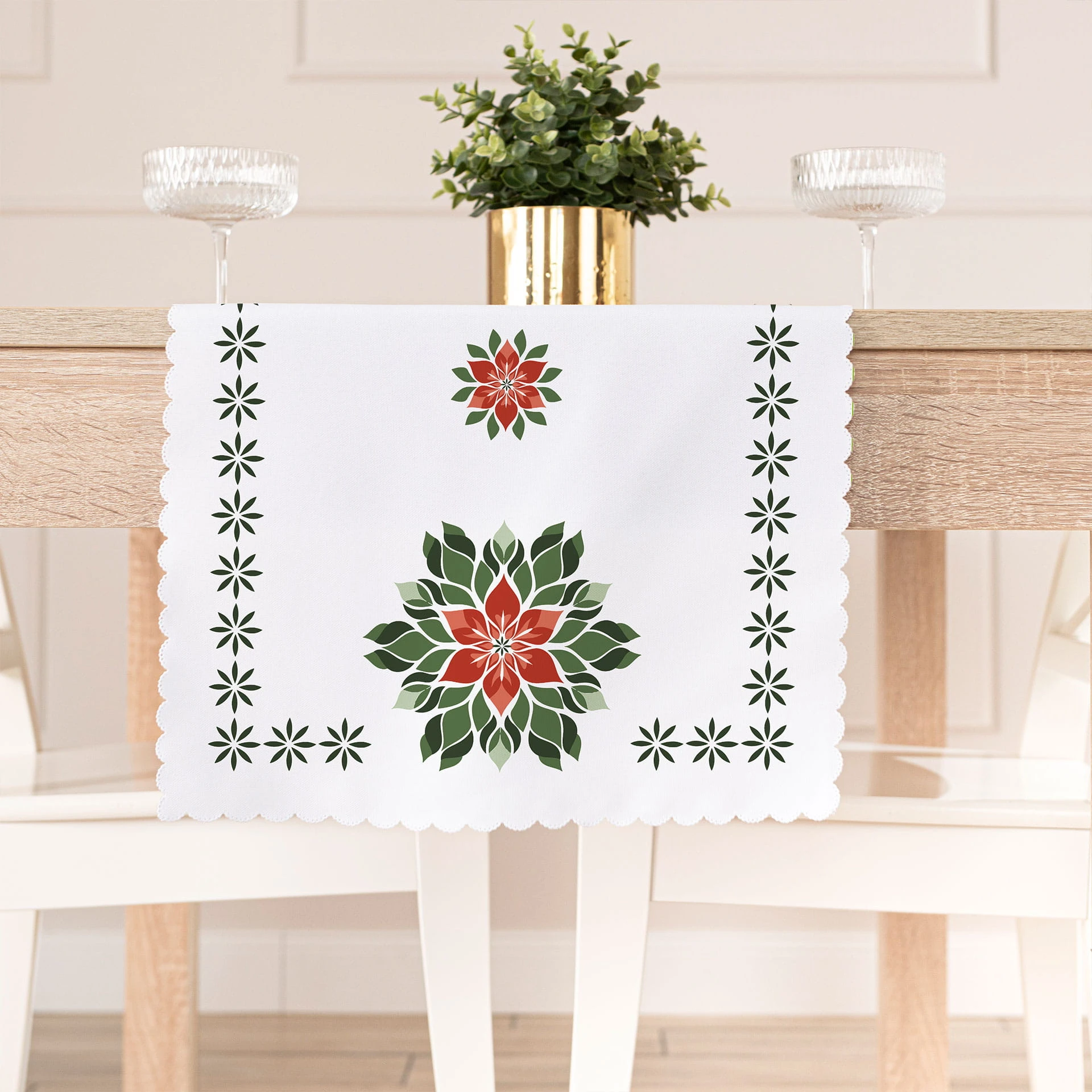 FOLK, GWIAZDA BETLEJEMSKA Bieżnik NINA WODOODPORNA, 38x140cm, kolor biały