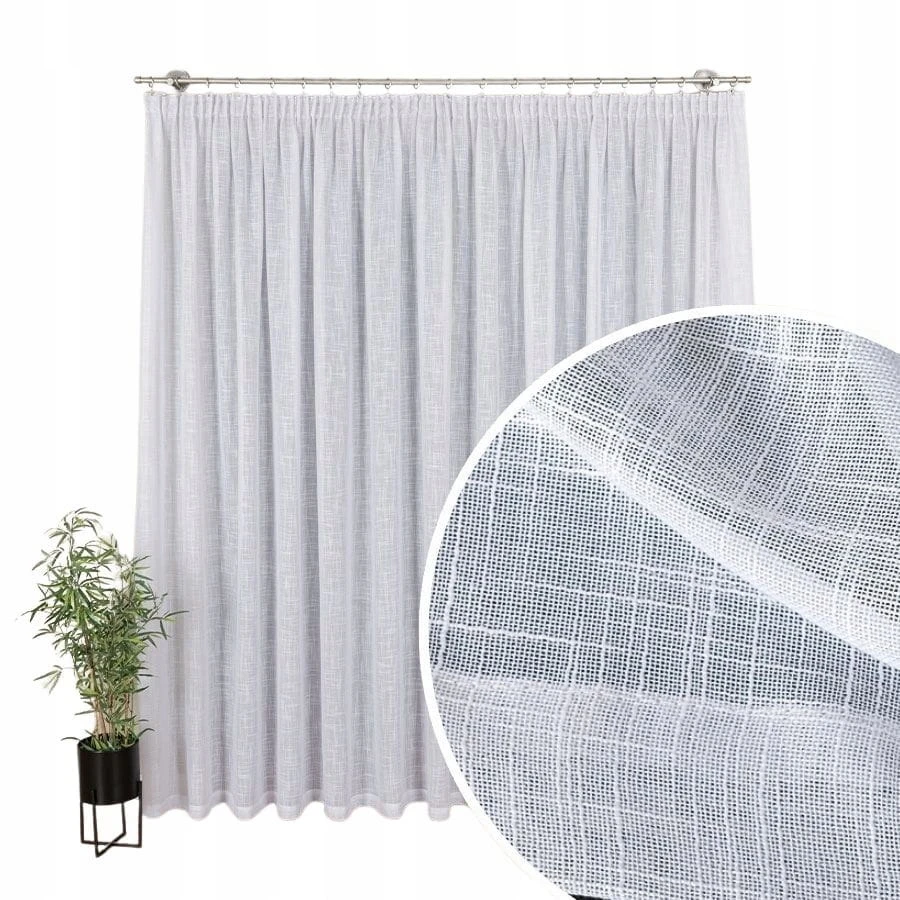 Elegancka Firanka z Białej Etaminy na Taśmie Marszczącej 1:2