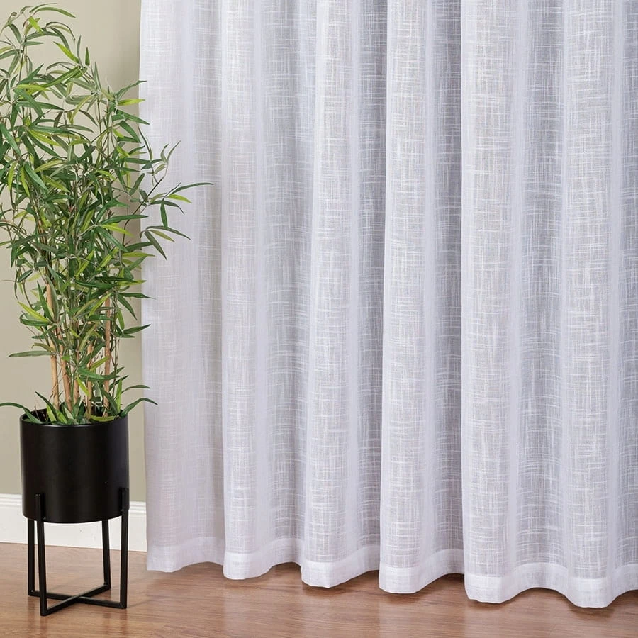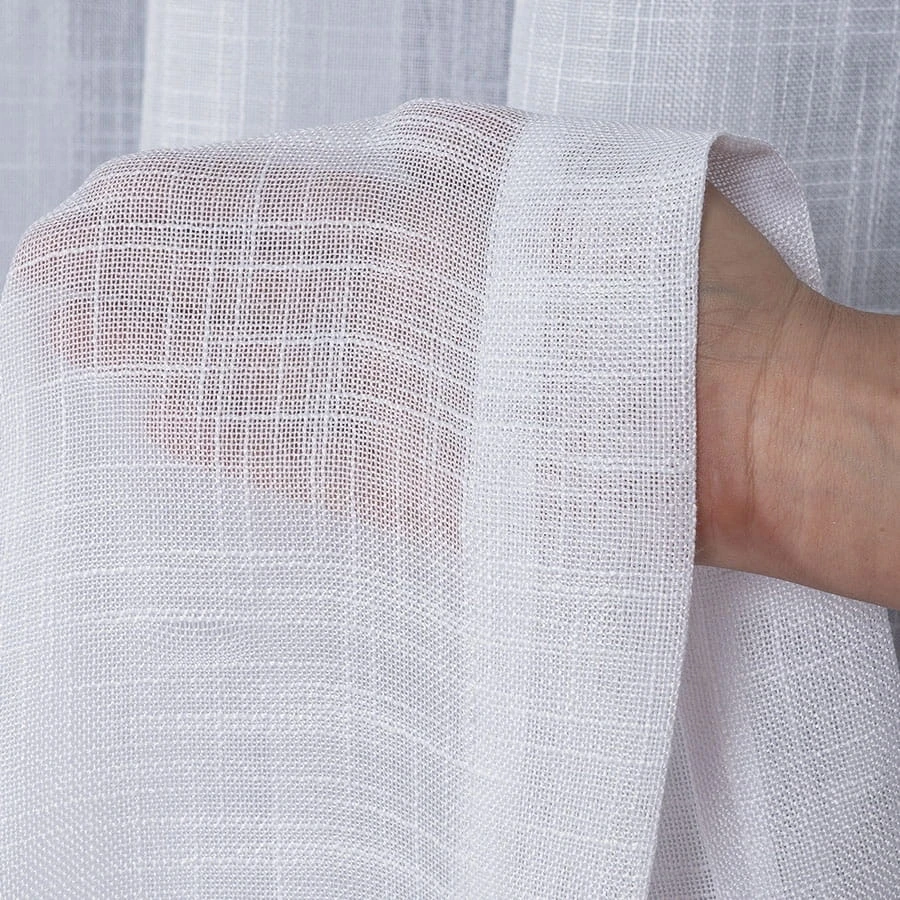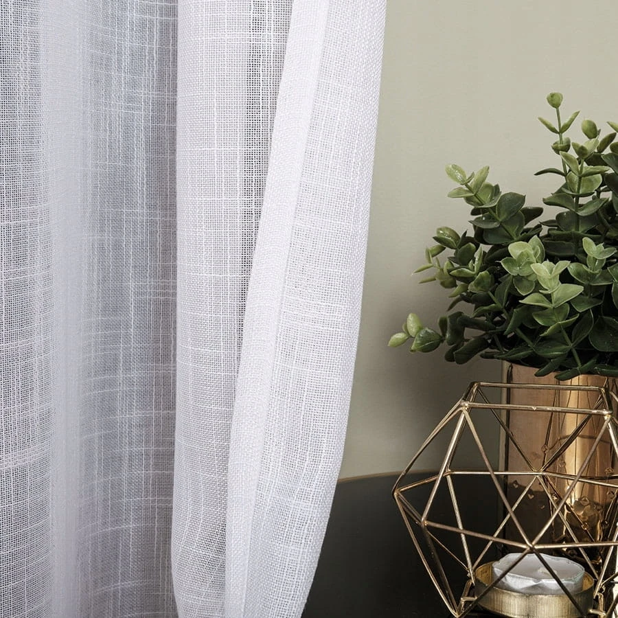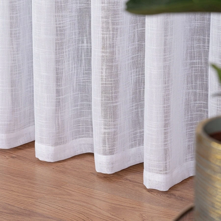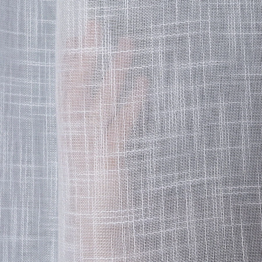 Firanka z białej etaminy doskonale rozprasza światło, wprowadzając jasność i przytulną atmosferę. Grubsze nitki tworzą strukturę przypominającą len, dodając naturalnego akcentu. Starannie obszyte boki oraz pięciocentymetrowa listwa na dole zapewniają trwałość i estetyczny wygląd.