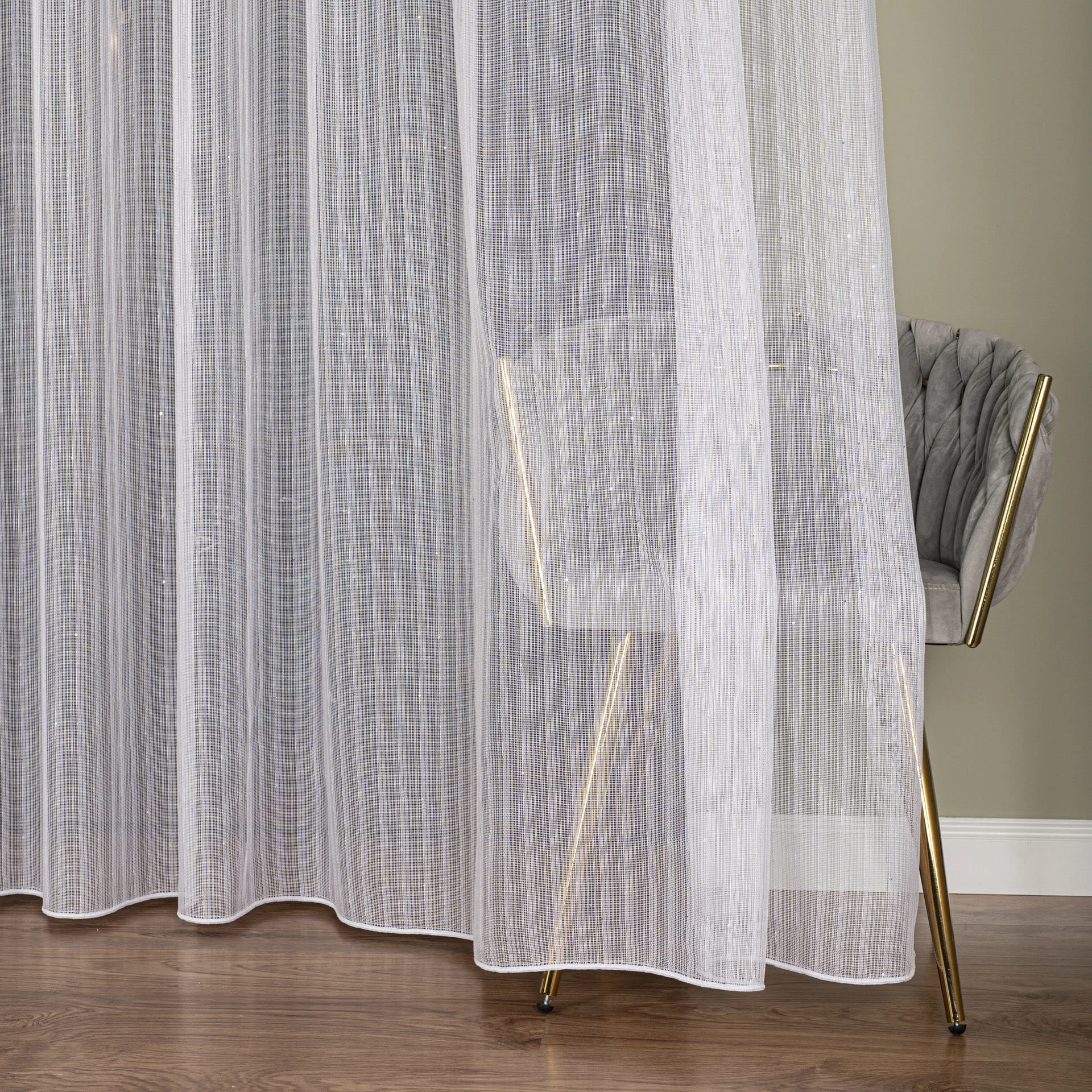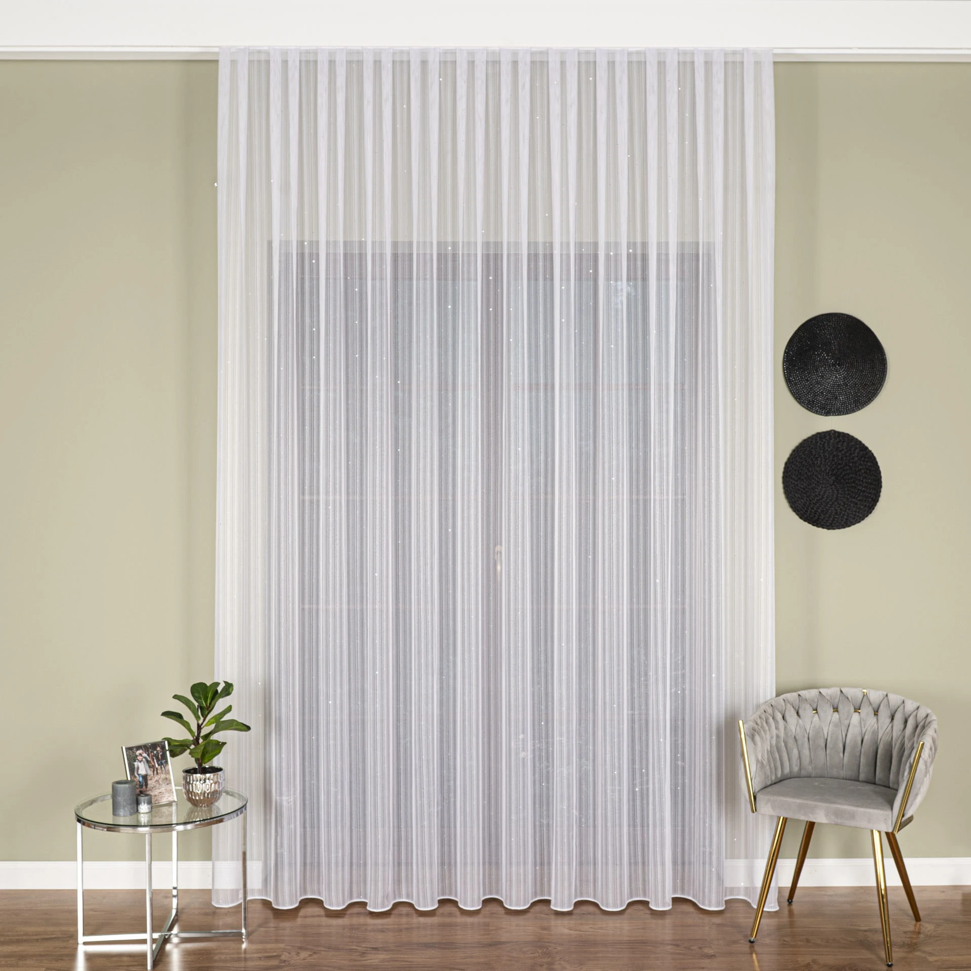 Firanka fantazyja z cekinami i z ołowianką, wysokość 300cm, kolor biały