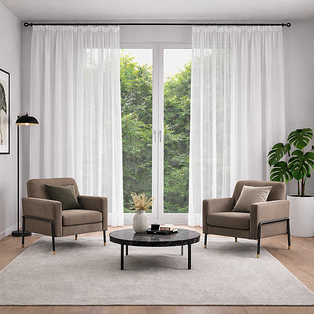 Dzianina fantazyjna, tzw. "sable" lub "francuski woal". Znakomicie się układa, dzieki temu doskonale nadaje się do szycia firan lub lambrekinów. Stosowana jest również samodzielnie jako prosta i bardzo elegancka firana.