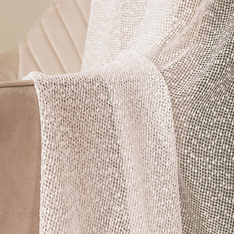 Firanka fantazyjna siatka z puszystymi przeszyciami, wysokość 280cm, kolor kremowy