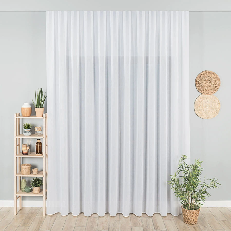 Firanka fantazyjna trudnopalna z ołowianką, wysokość 300cm, kolor biały