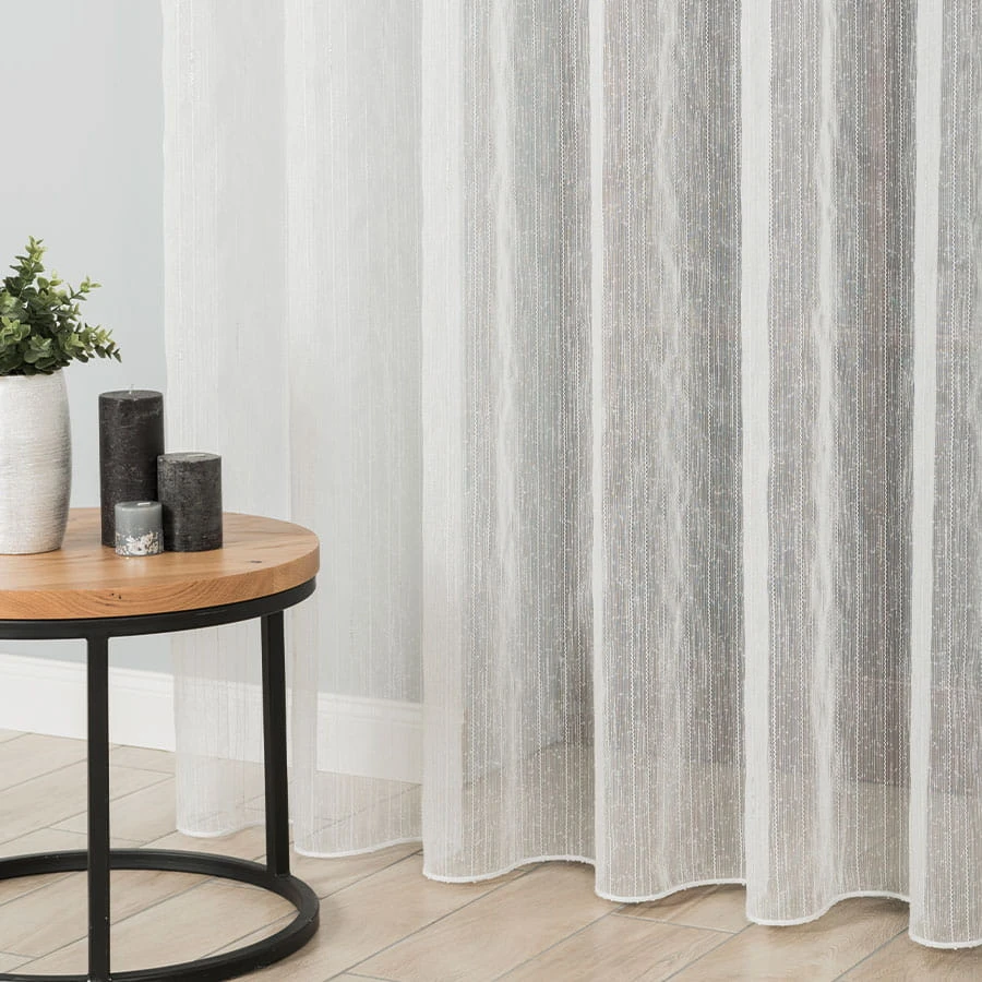Firanka fantazyjna z ołowianką, wysokość 295cm, kolor kremowy ze srebrnym