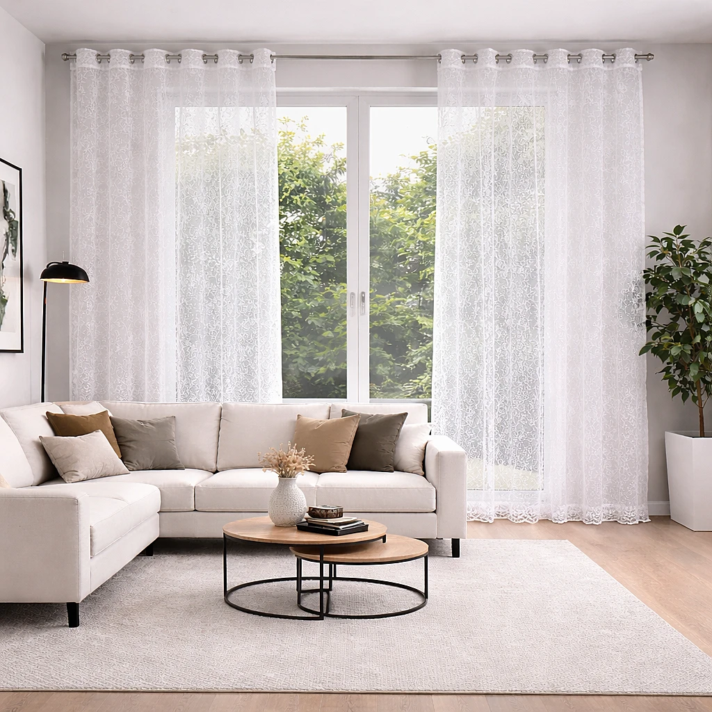 Firanka fantazyjna z ołowianką, wysokość 300cm, kolor biały