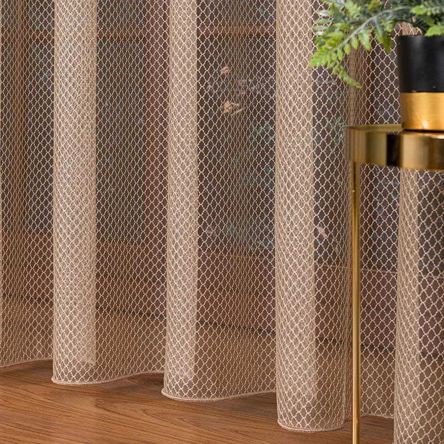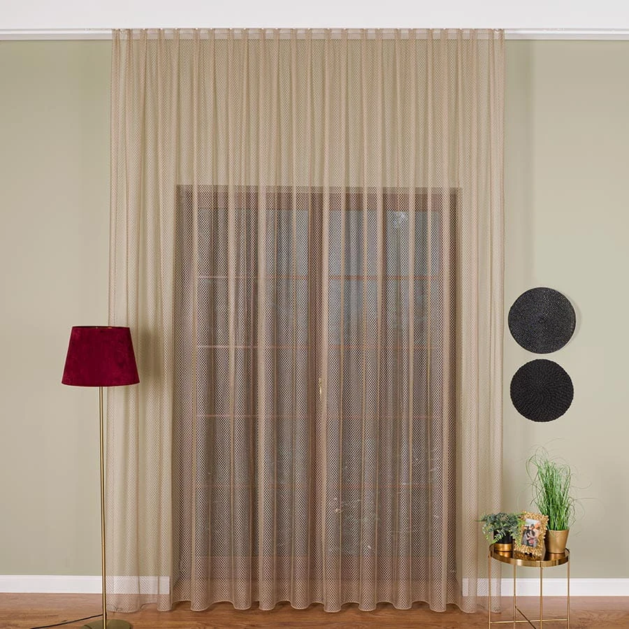 Firanka fantazyjna z ołowianką, wysokość 300cm, kolor ciemny beżowy