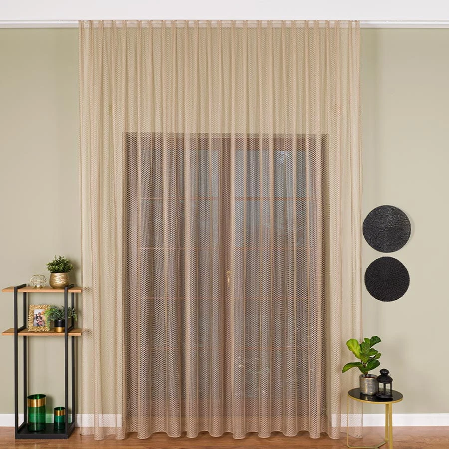 Firanka fantazyjna z ołowianką, wysokość 300cm, kolor jasny beżowy