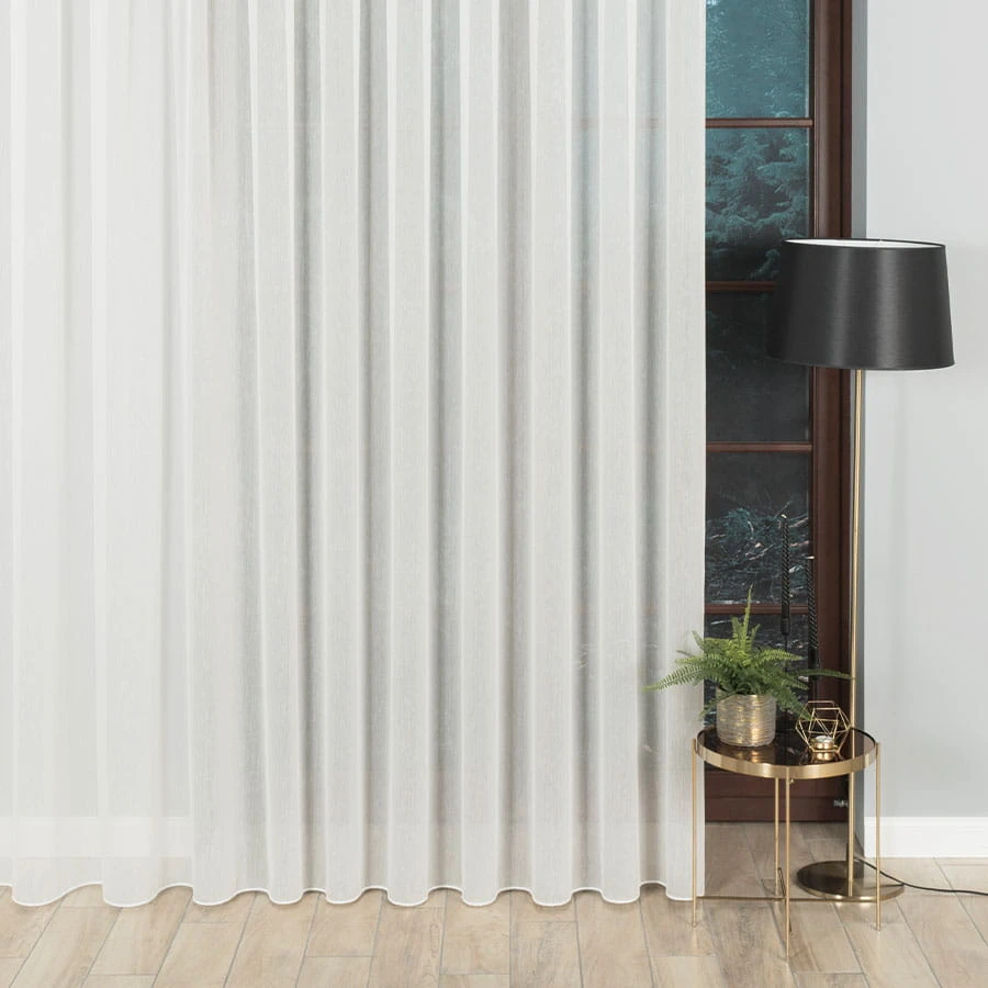 Firanka fantazyjna z ołowianką, wysokość 300cm, kolor kremowy z błyszczącą nitką
