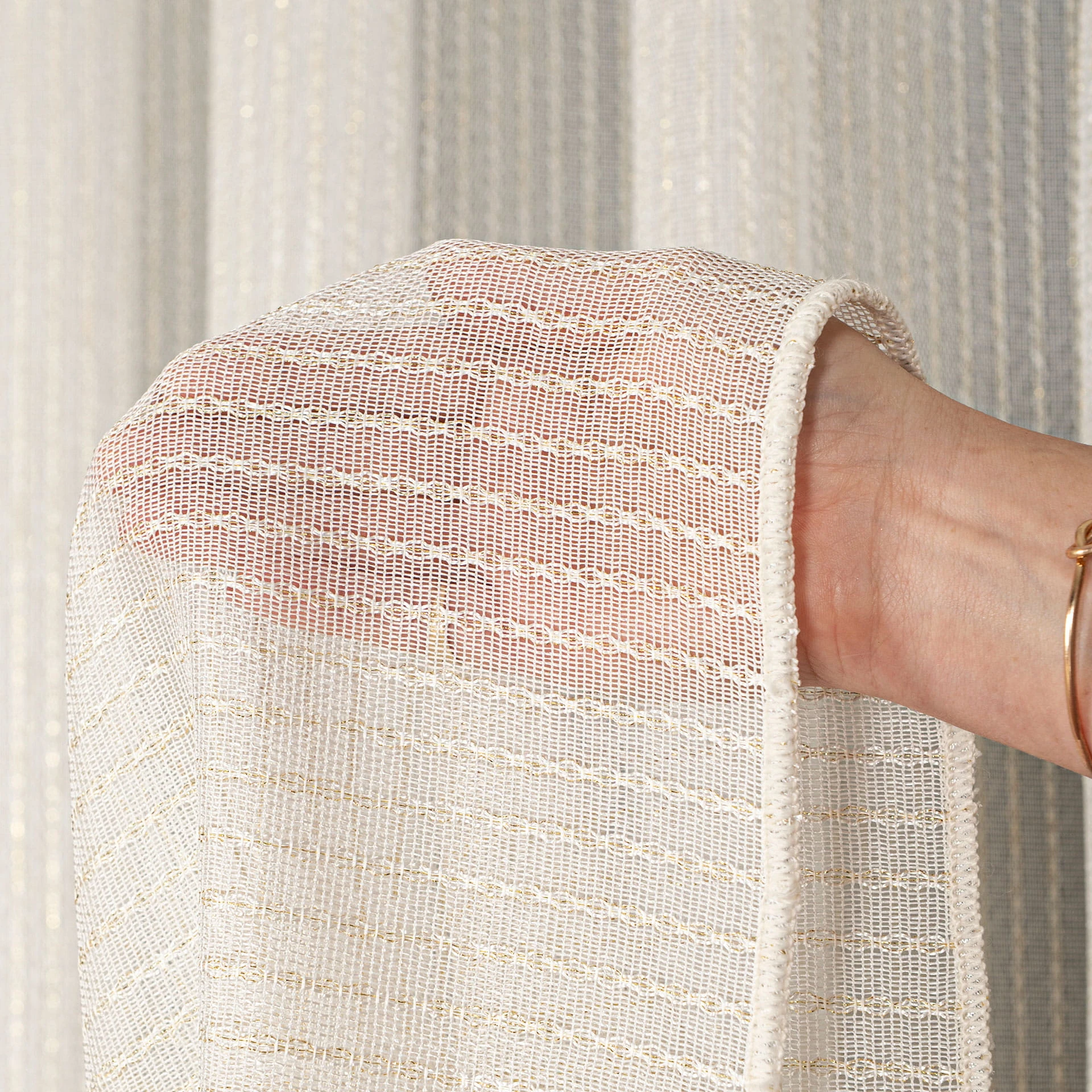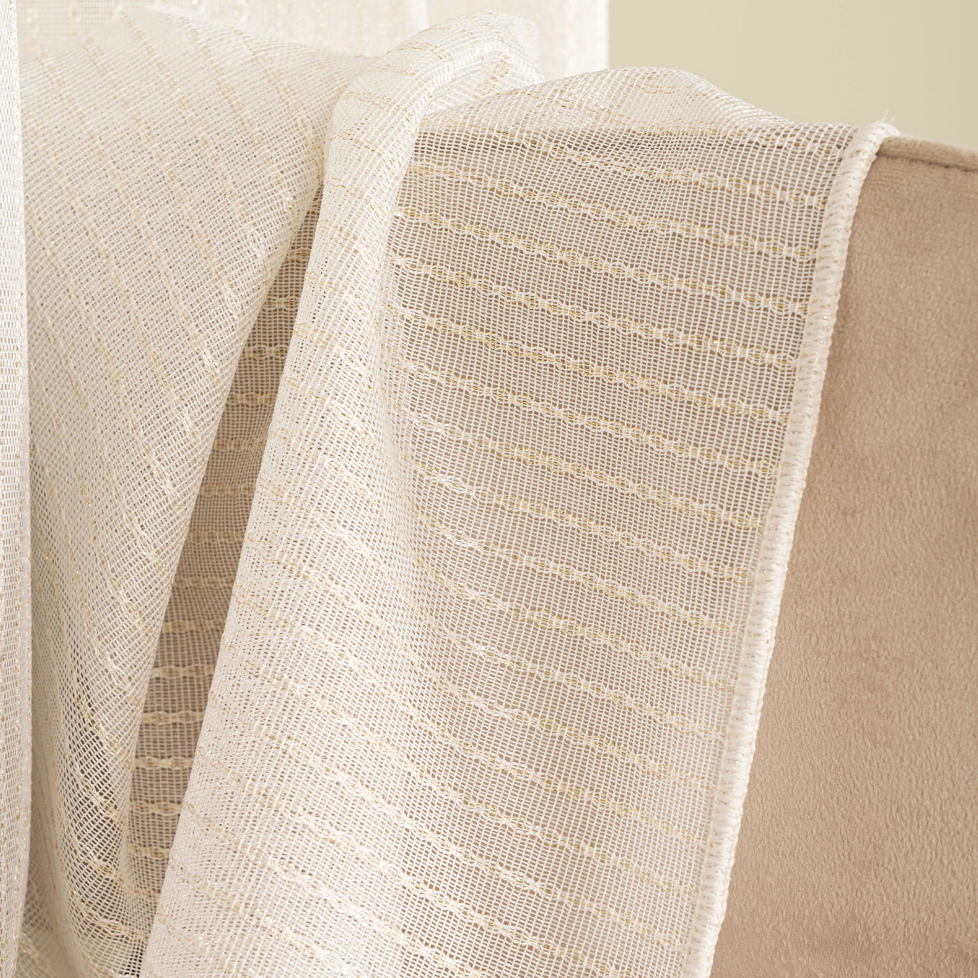 Firanka fantazyjna z ołowianką, wysokość 300cm, kolor kremowy ze złotą nitką