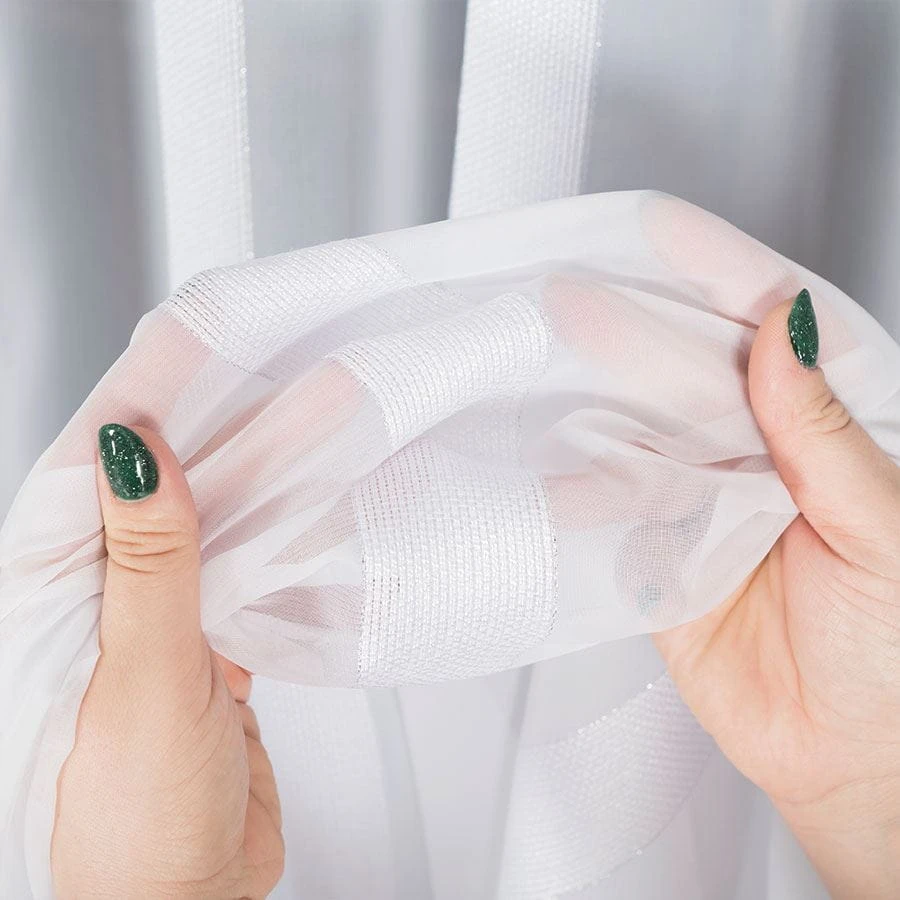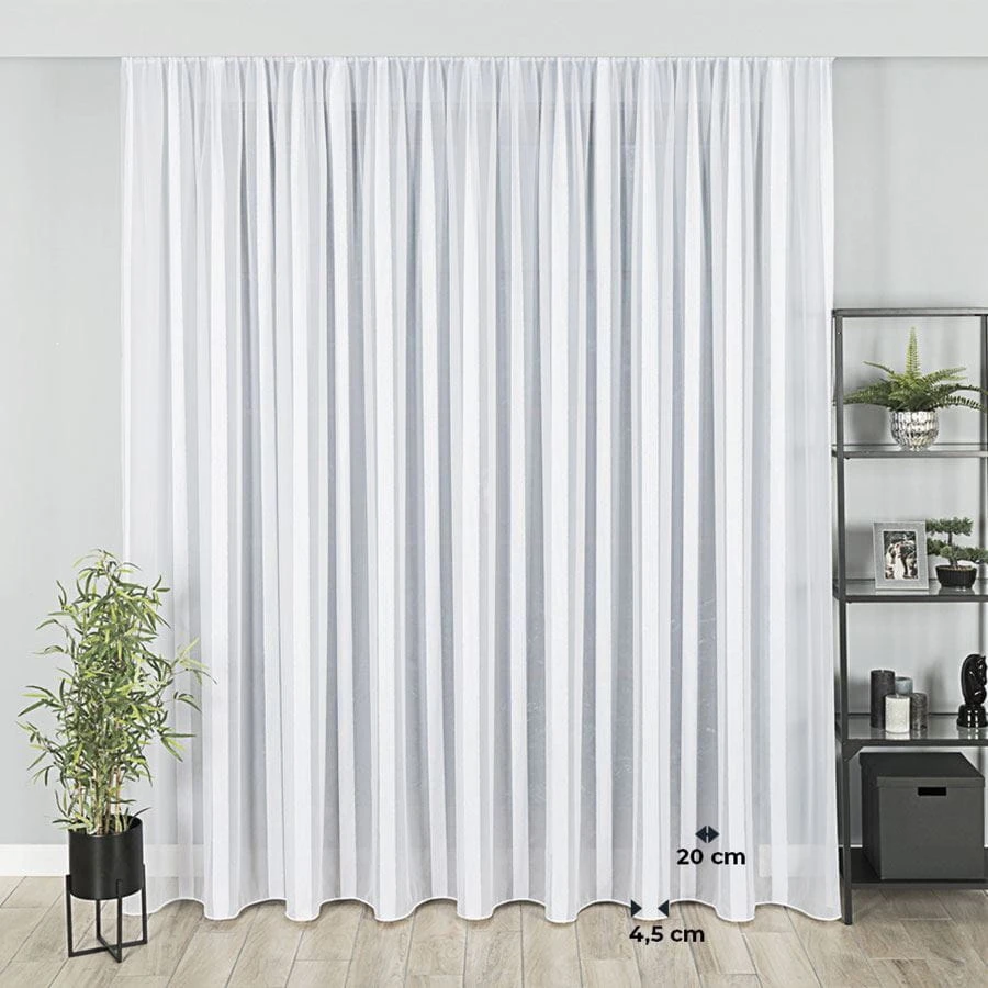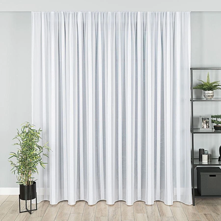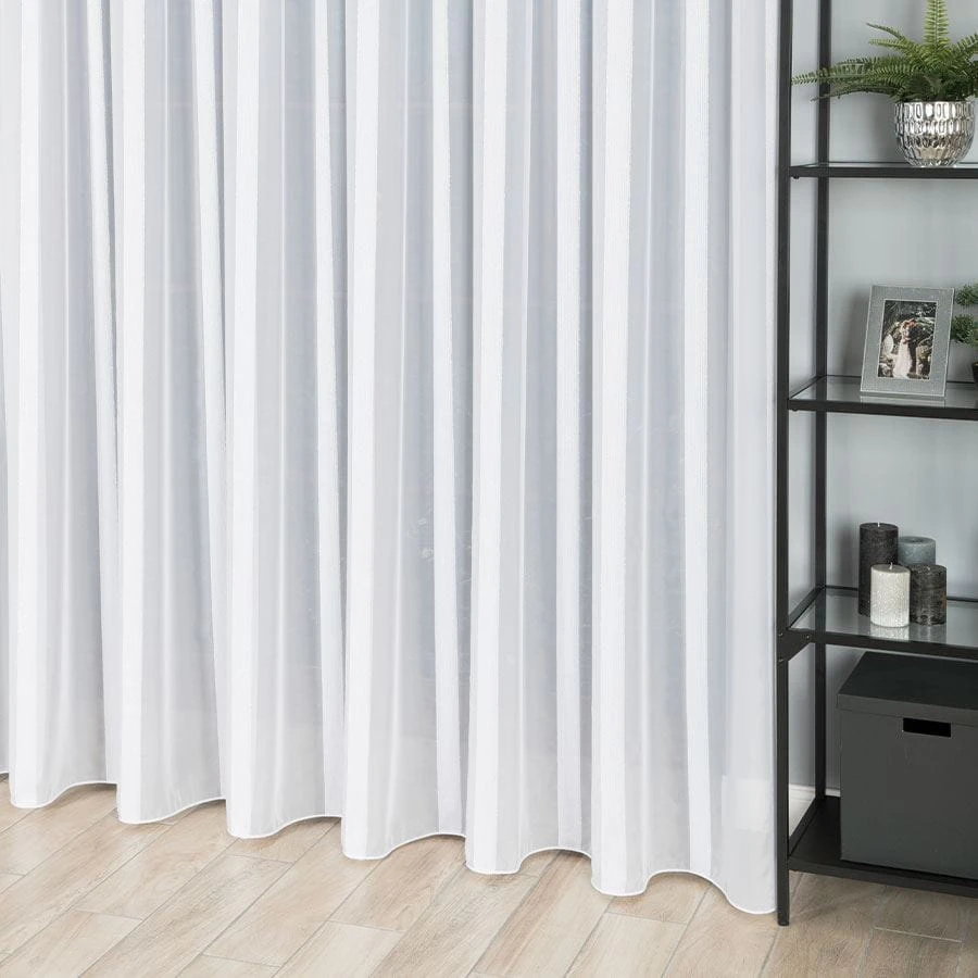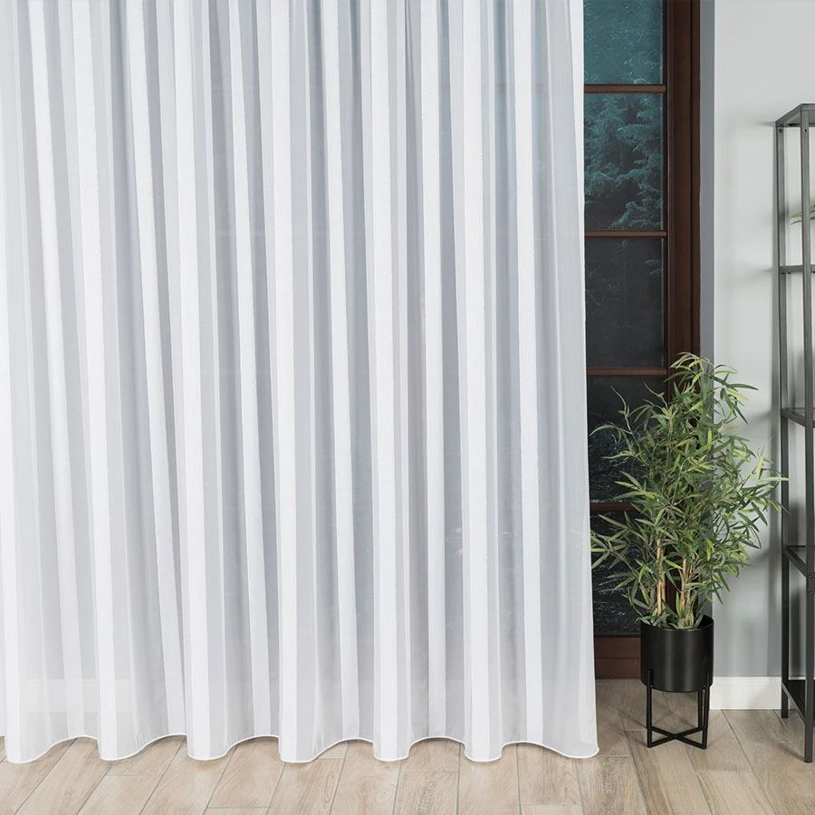 Firanka fantazyjna z ołowianką, z pionowymi pasami, wysokość 300cm, kolor biały