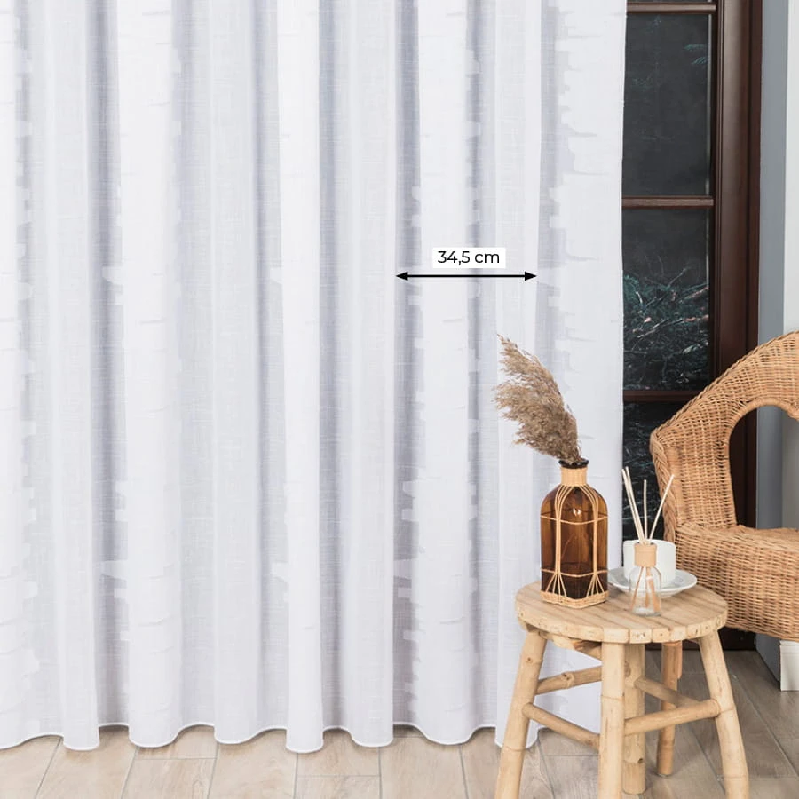 Firanka fantazyjna ze wzorem po całości z ołowianką, wysokość 300cm, kolor biały z szarym