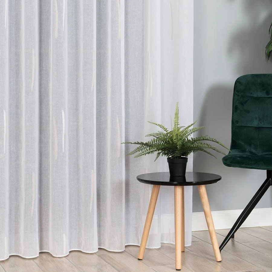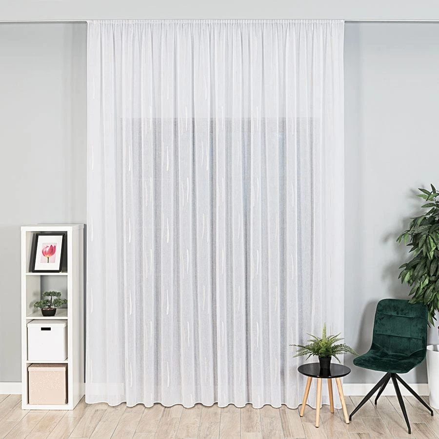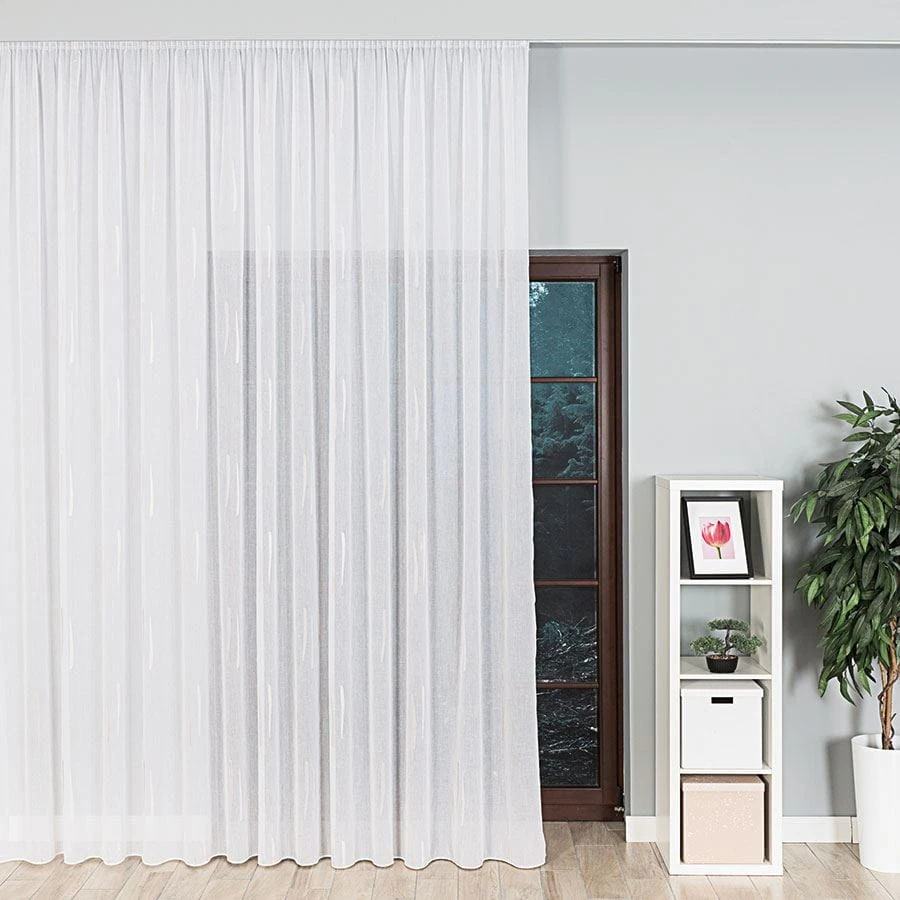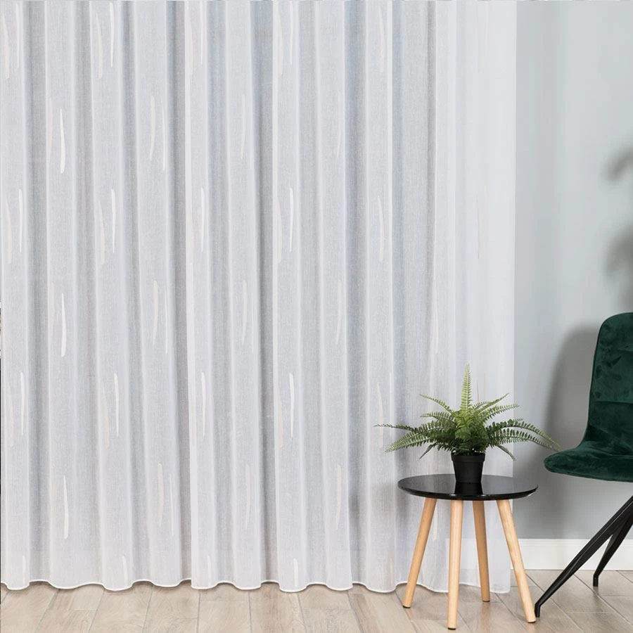 Firanka fantazyjna ze wzorem po całości z ołowianką, wysokość 320cm, kolor biały z beżowym