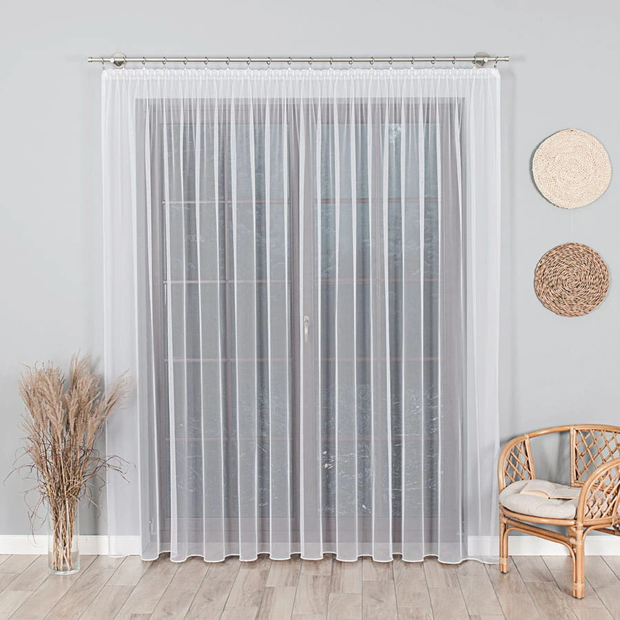 Firanka gładka grecki tiul z ołowianką, wysokość 320cm, kolor biały