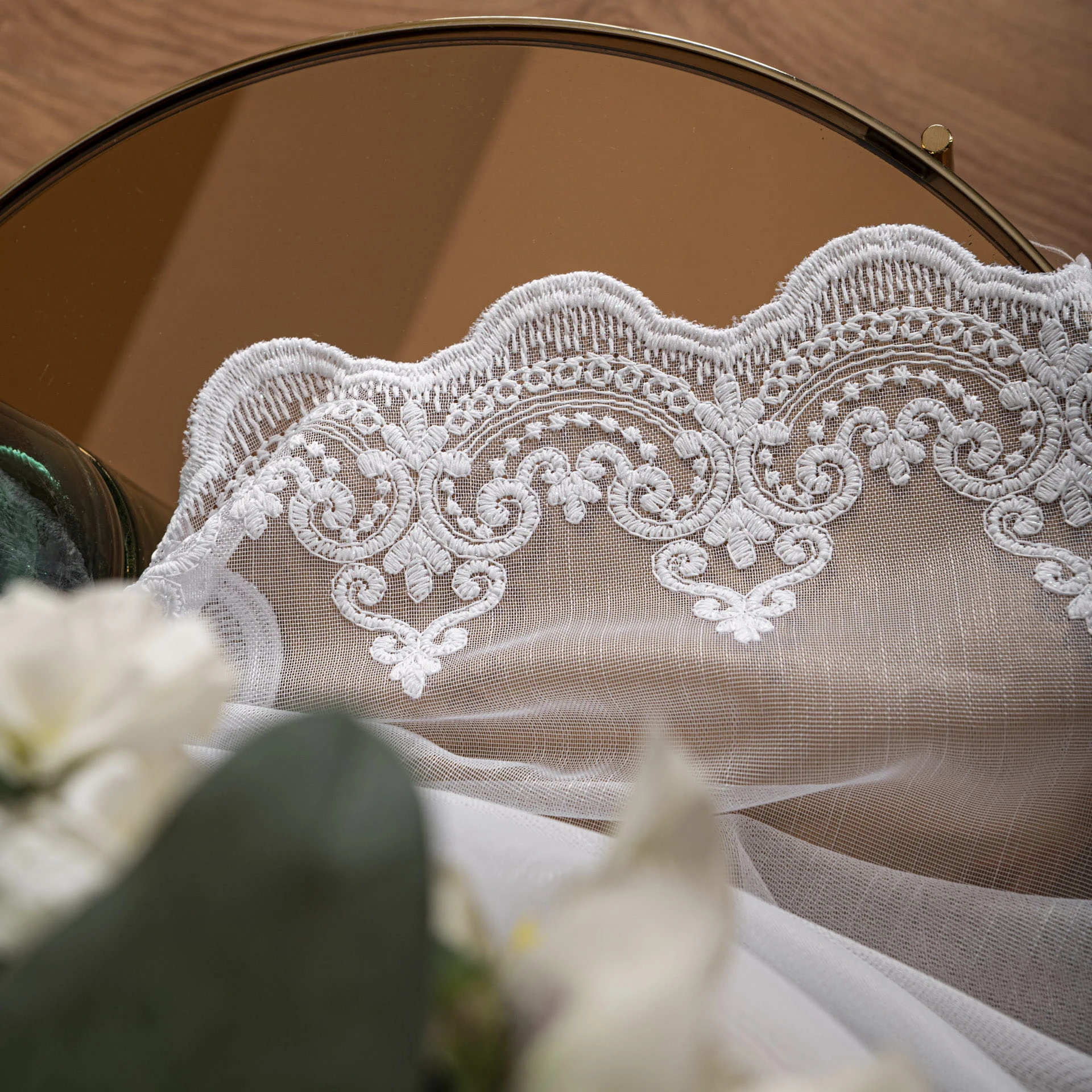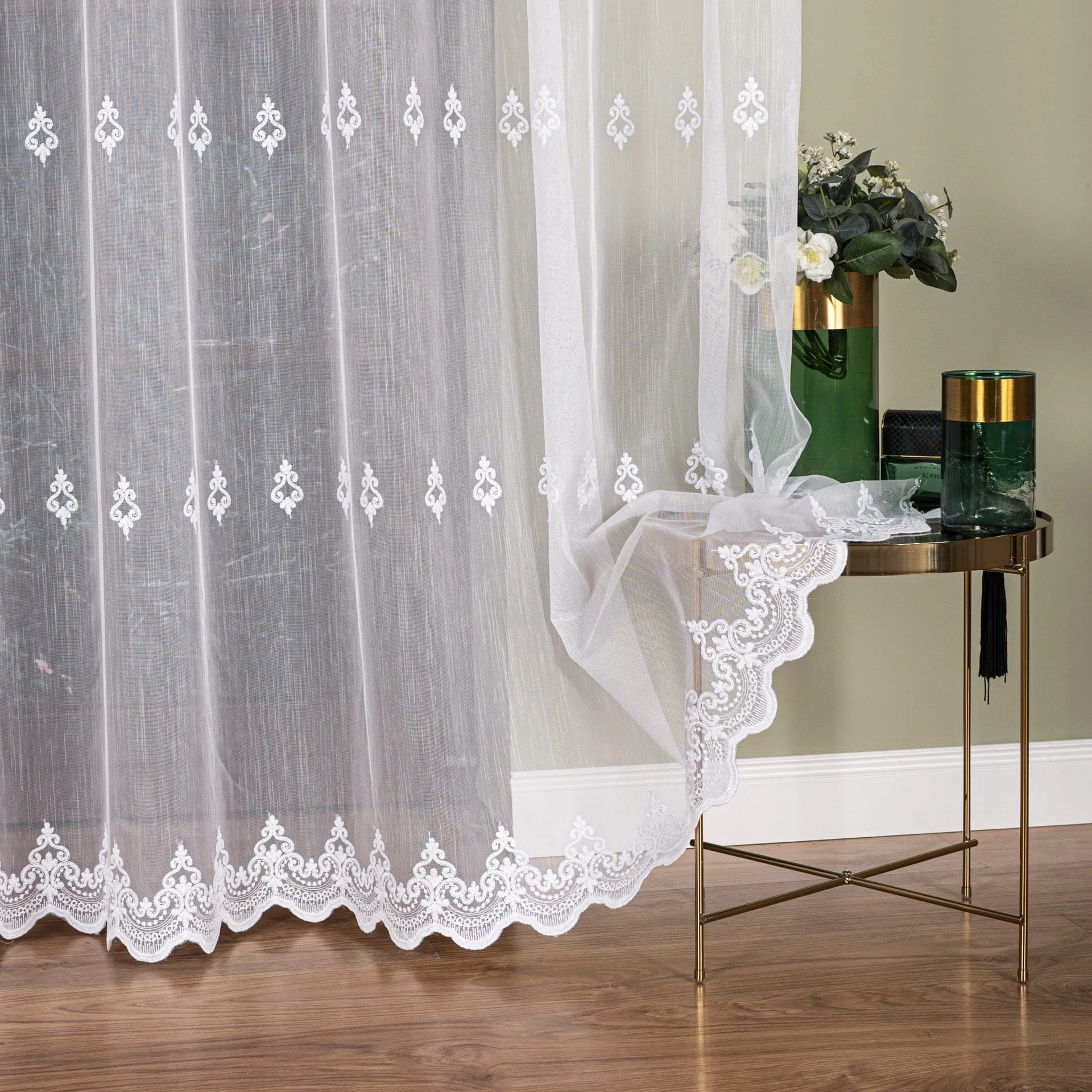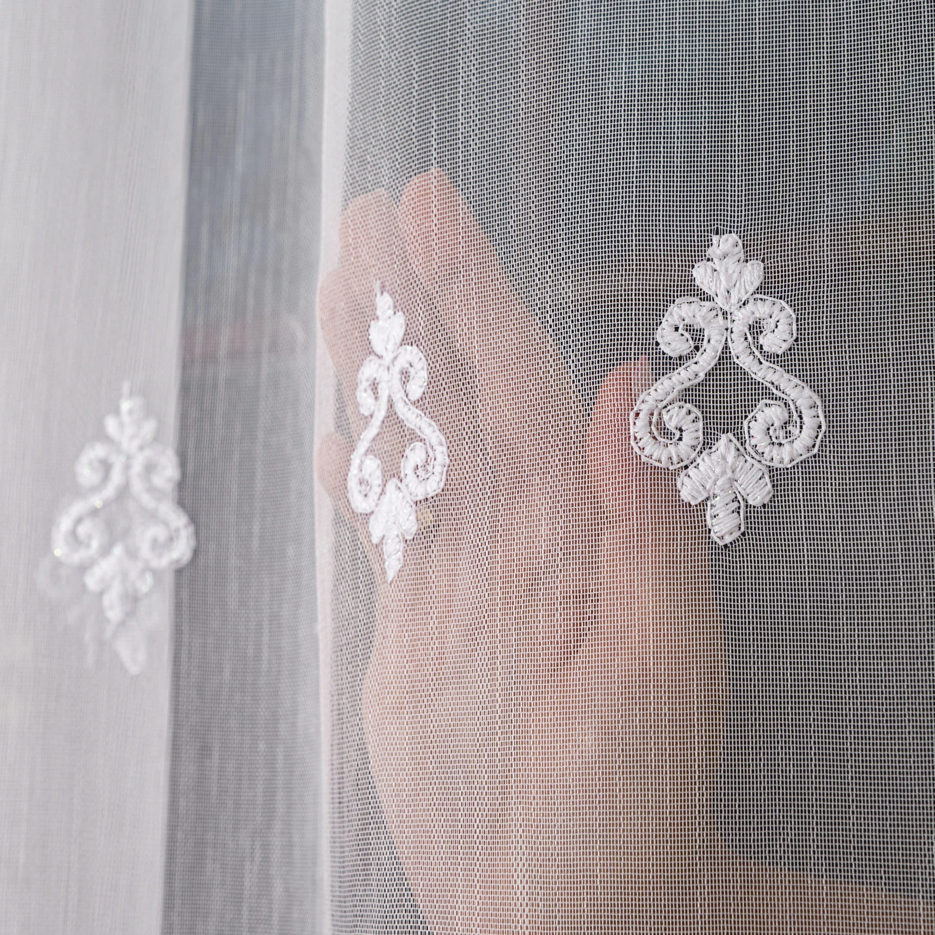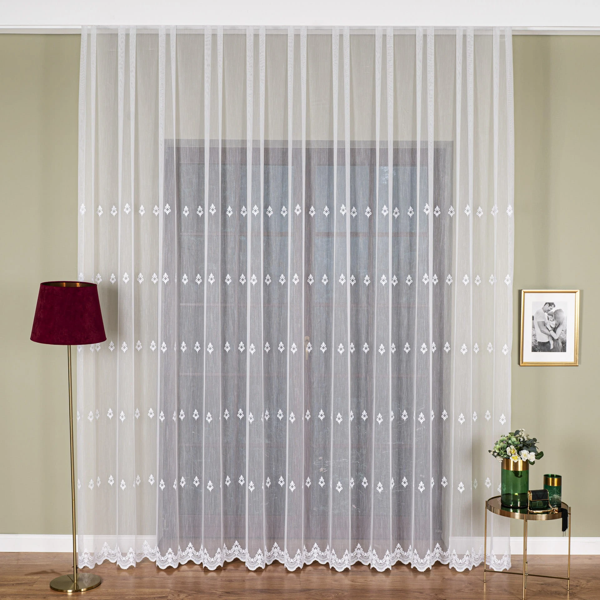 Firanka haftowana pasowa, wysokość 300cm, kolor biały