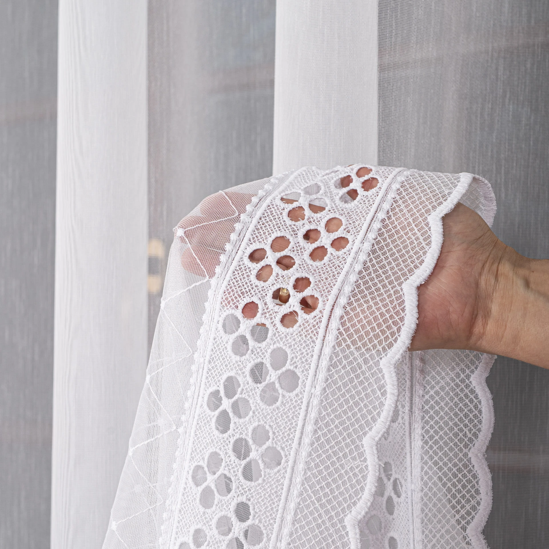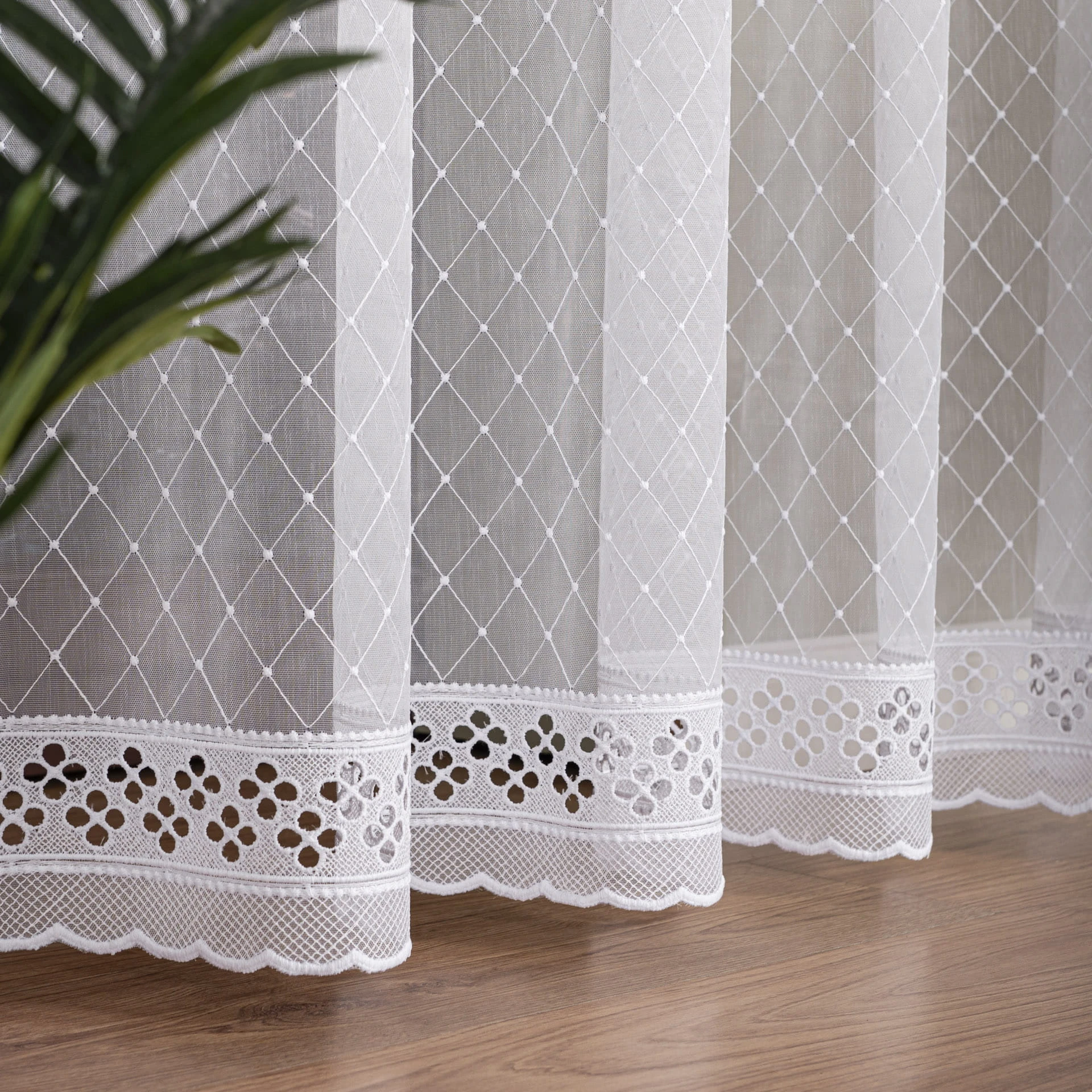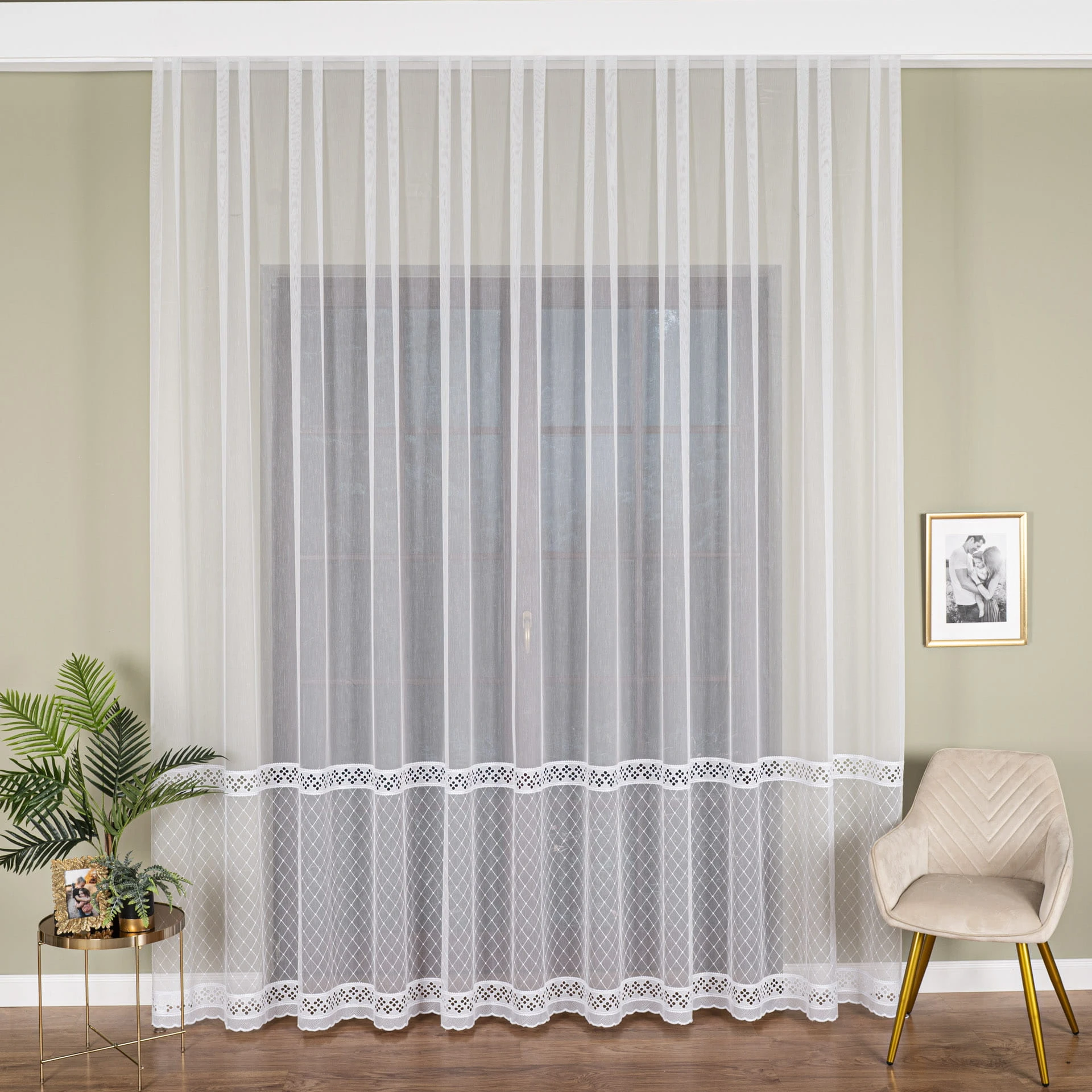 Firanka haftowana po całości, wysokość 285cm, kolor biały