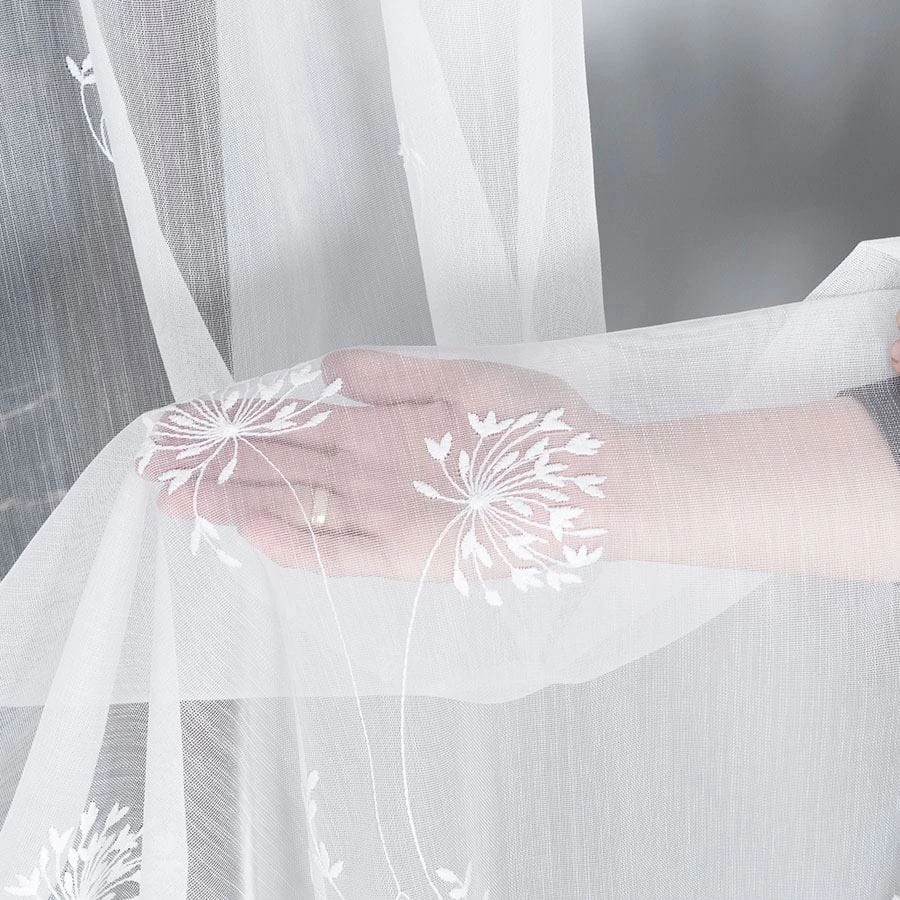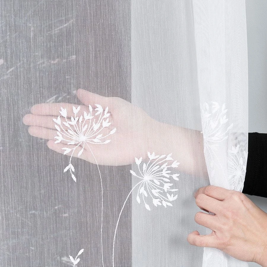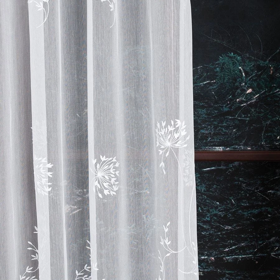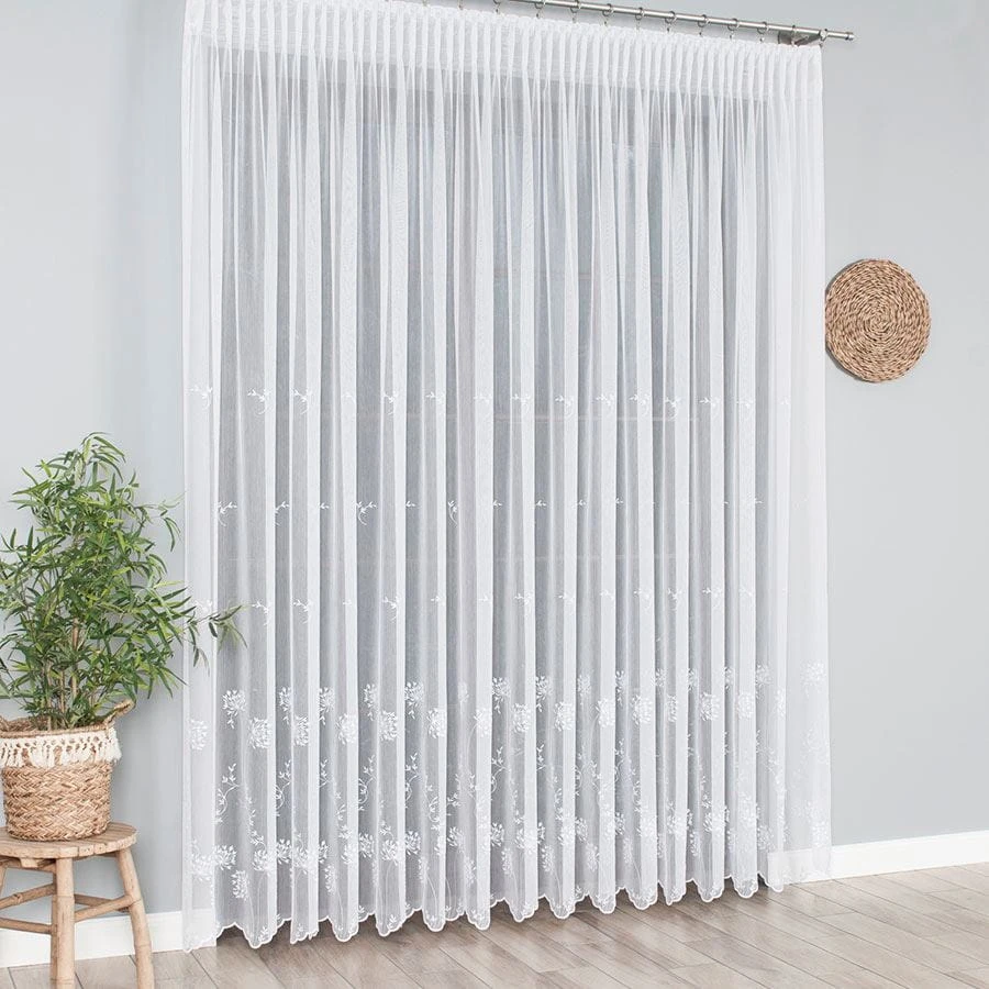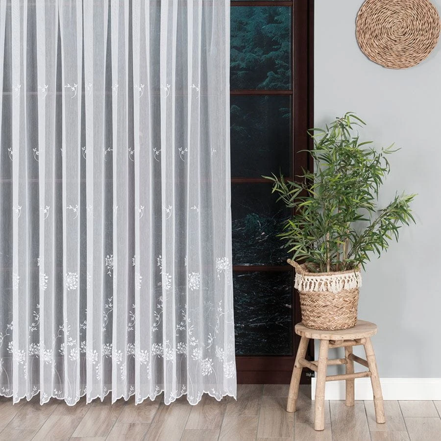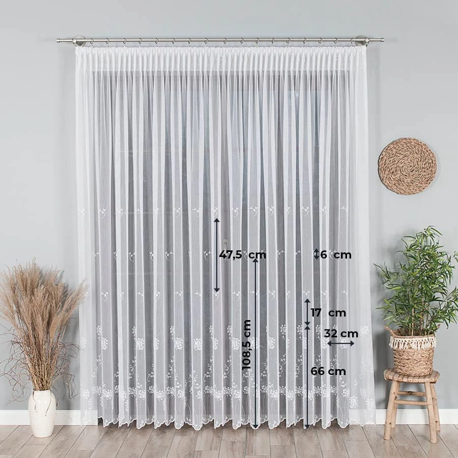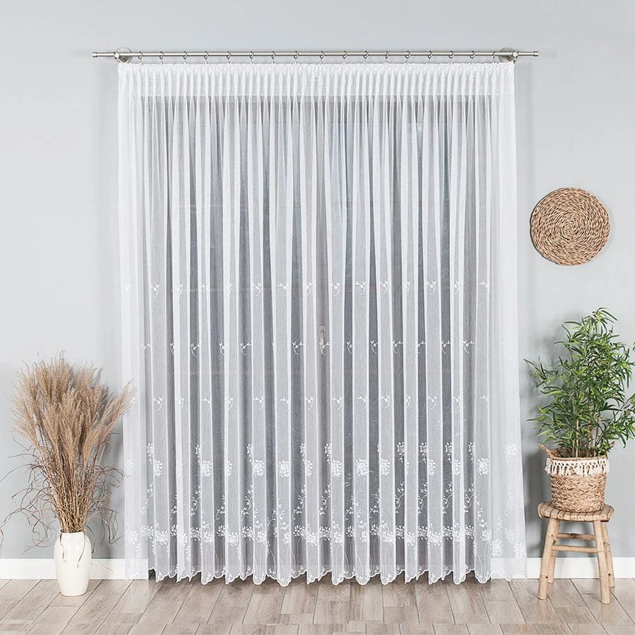 Firanka haftowana ze wzorem pasowym, wysokość 280cm, kolor 001 biały 053801/464/001/000280/1