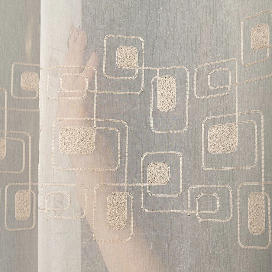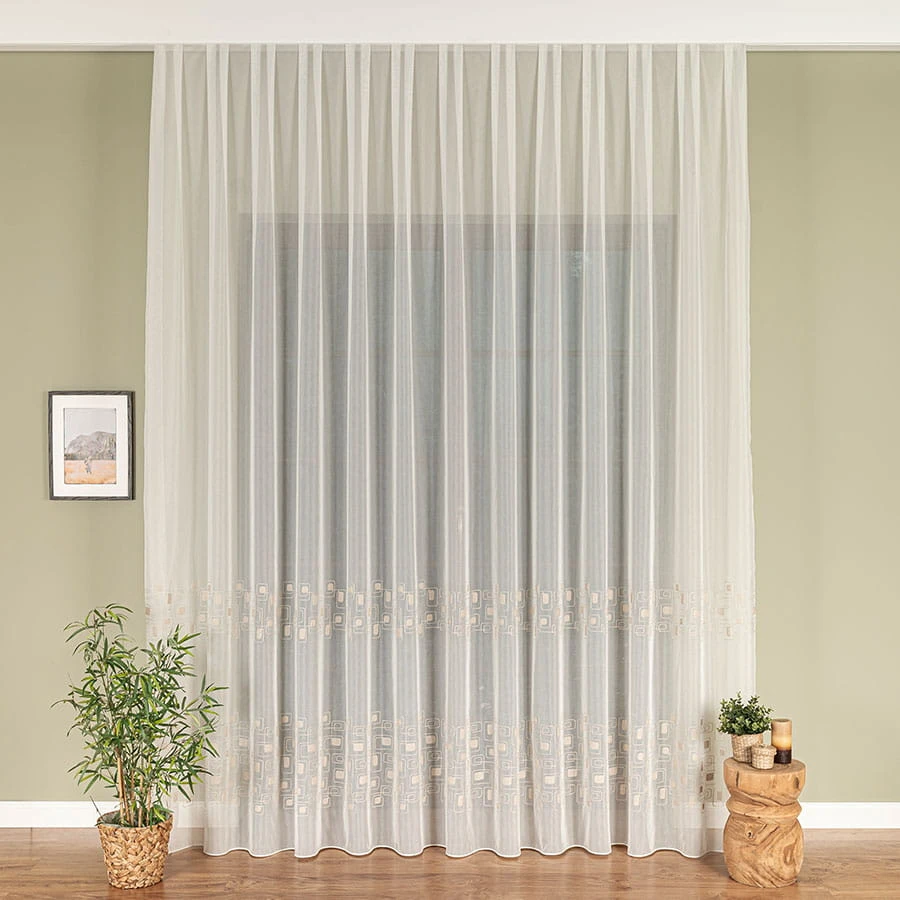 Firanka haftowana ze wzorem pasowym, wysokość 280cm, kolor 012 kremowy 224128/955/012/000280/1