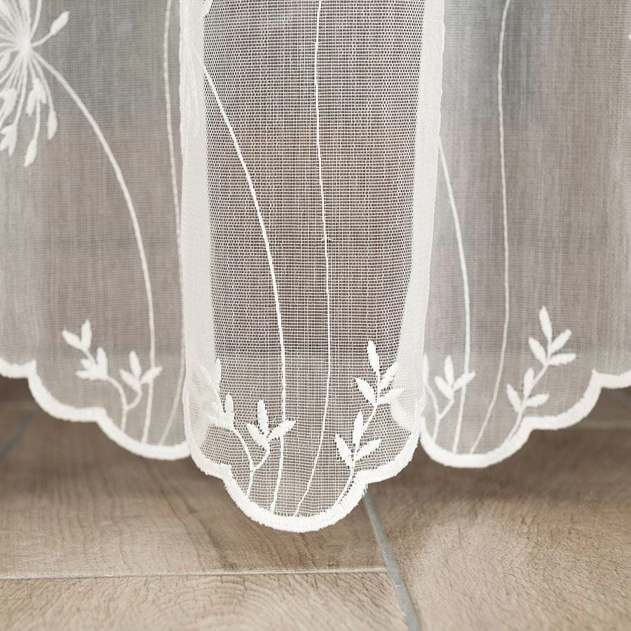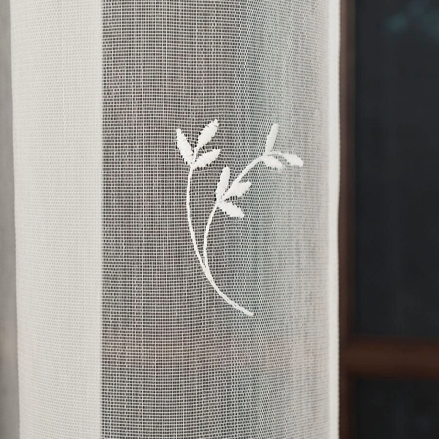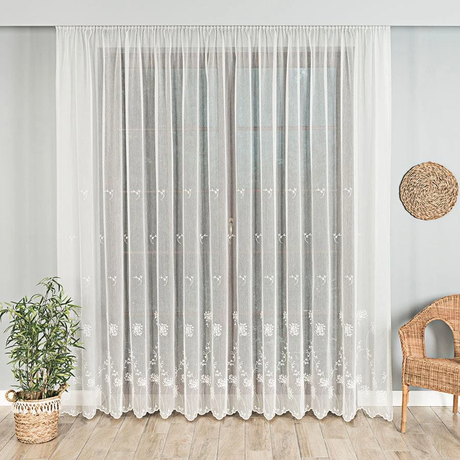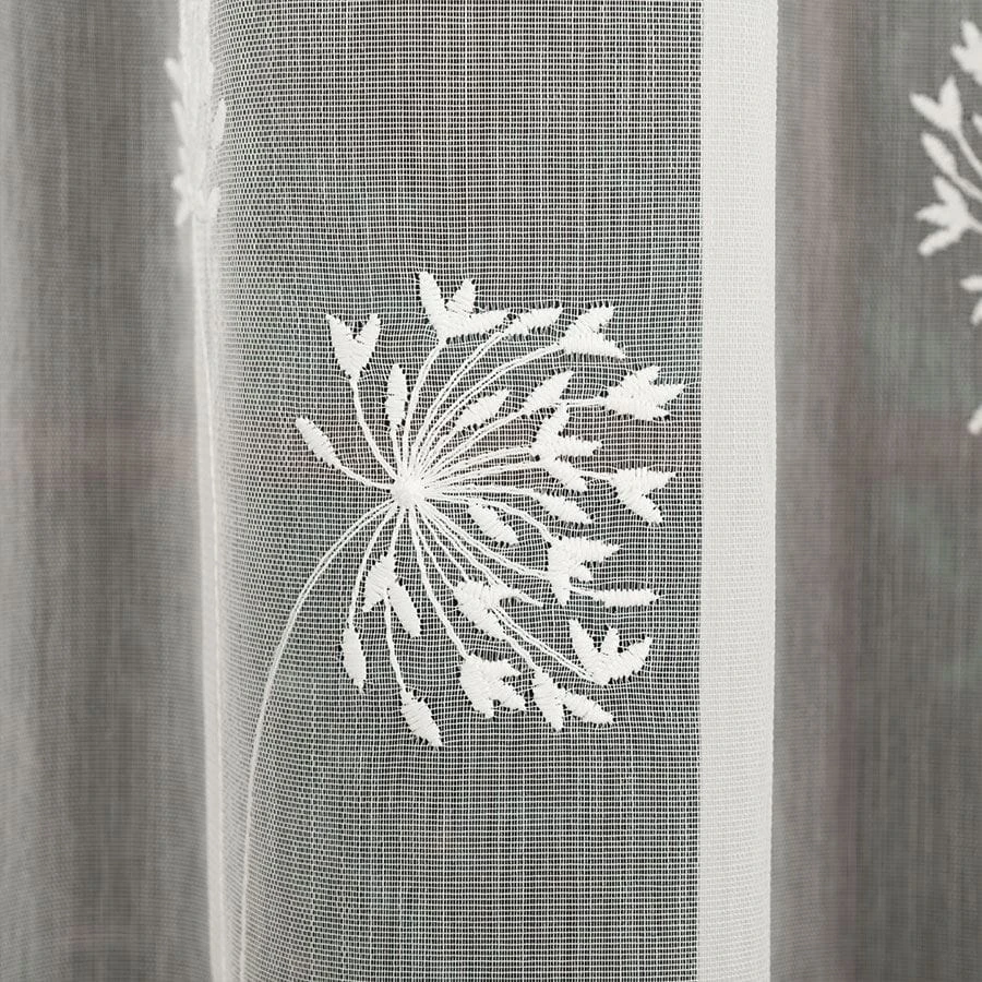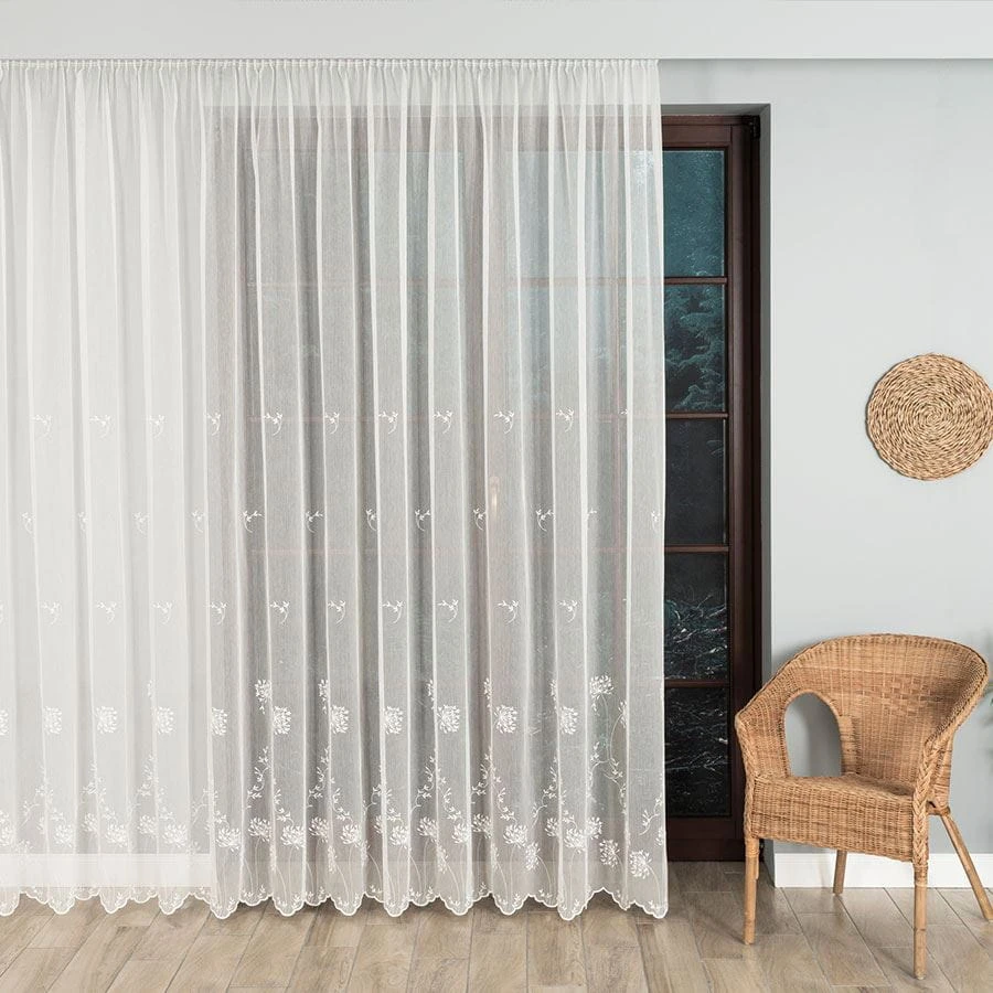 Firanka haftowana ze wzorem pasowym, wysokość 280cm, kolor kremowy