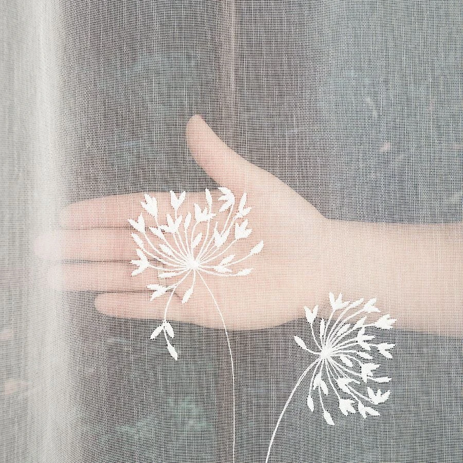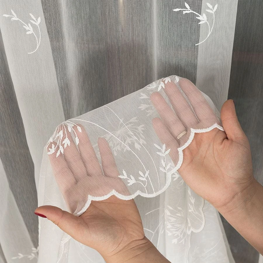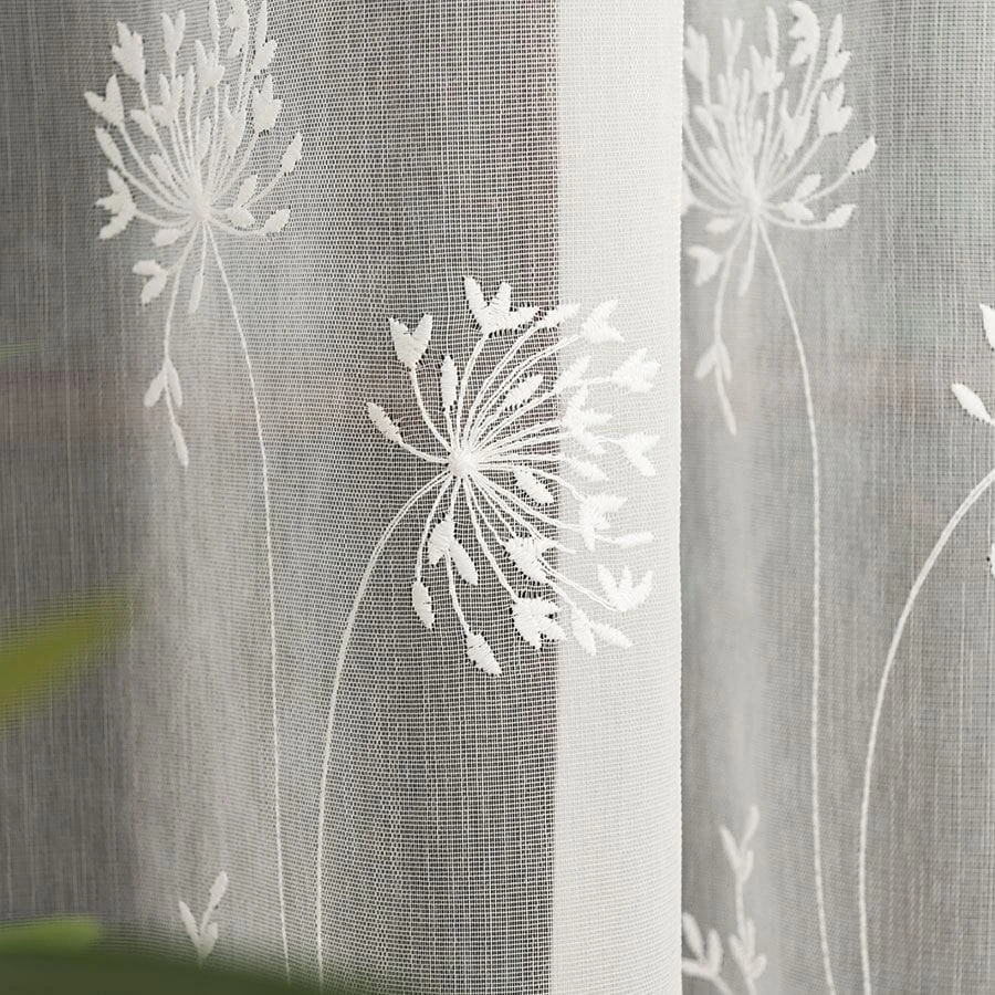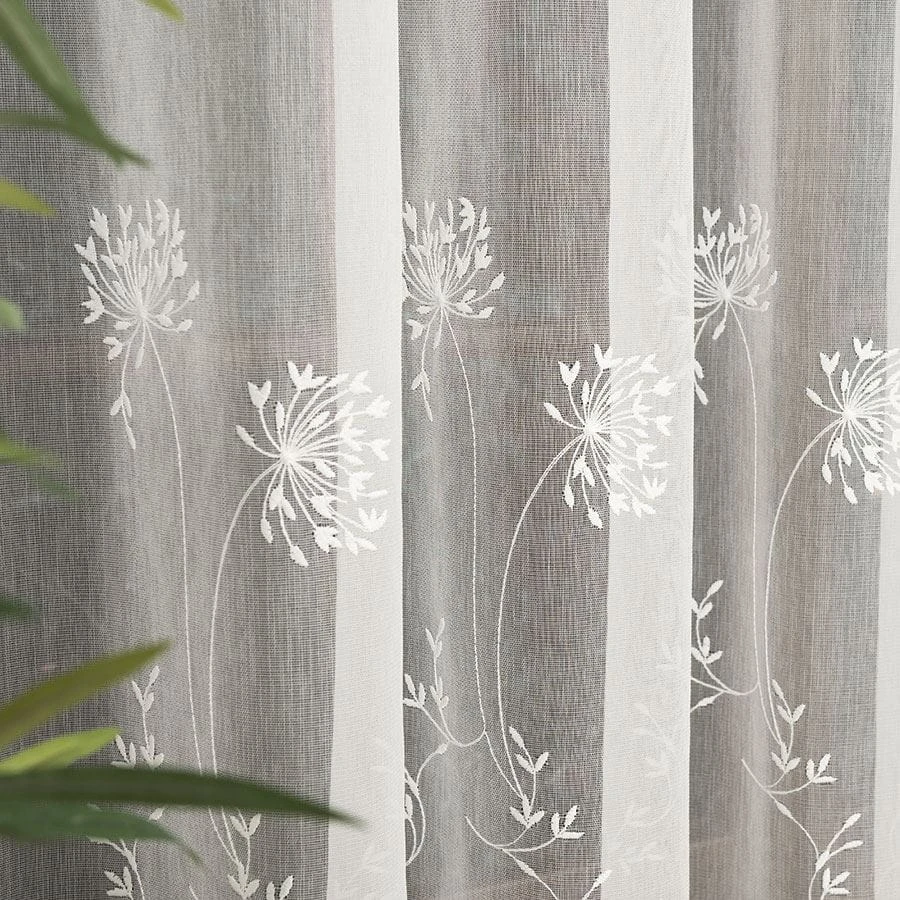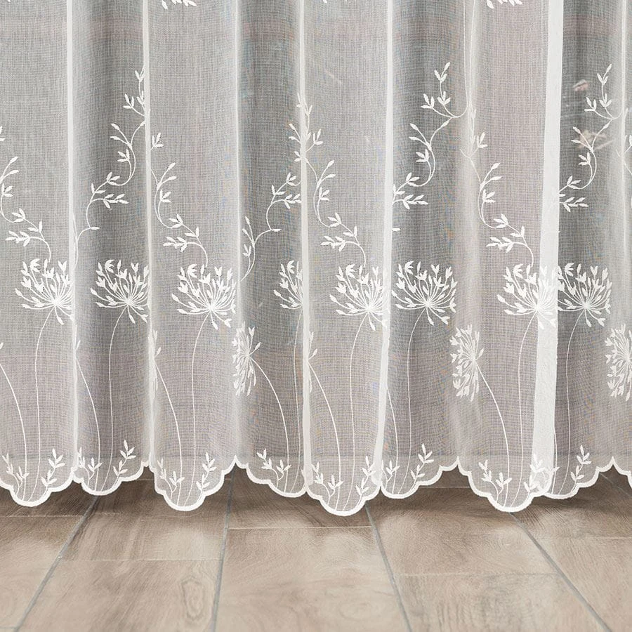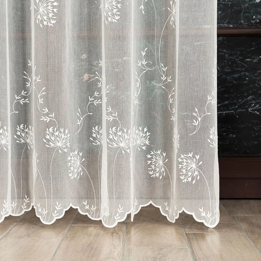 Firanka haftowana ze wzorem pasowym, wysokość 280cm, kolor kremowy