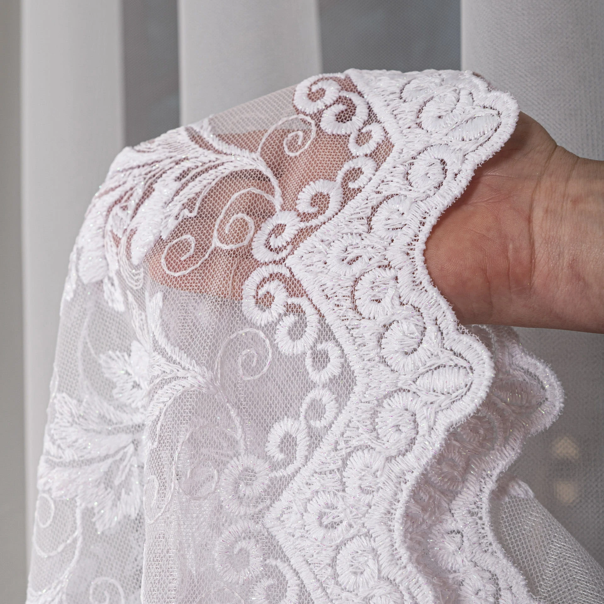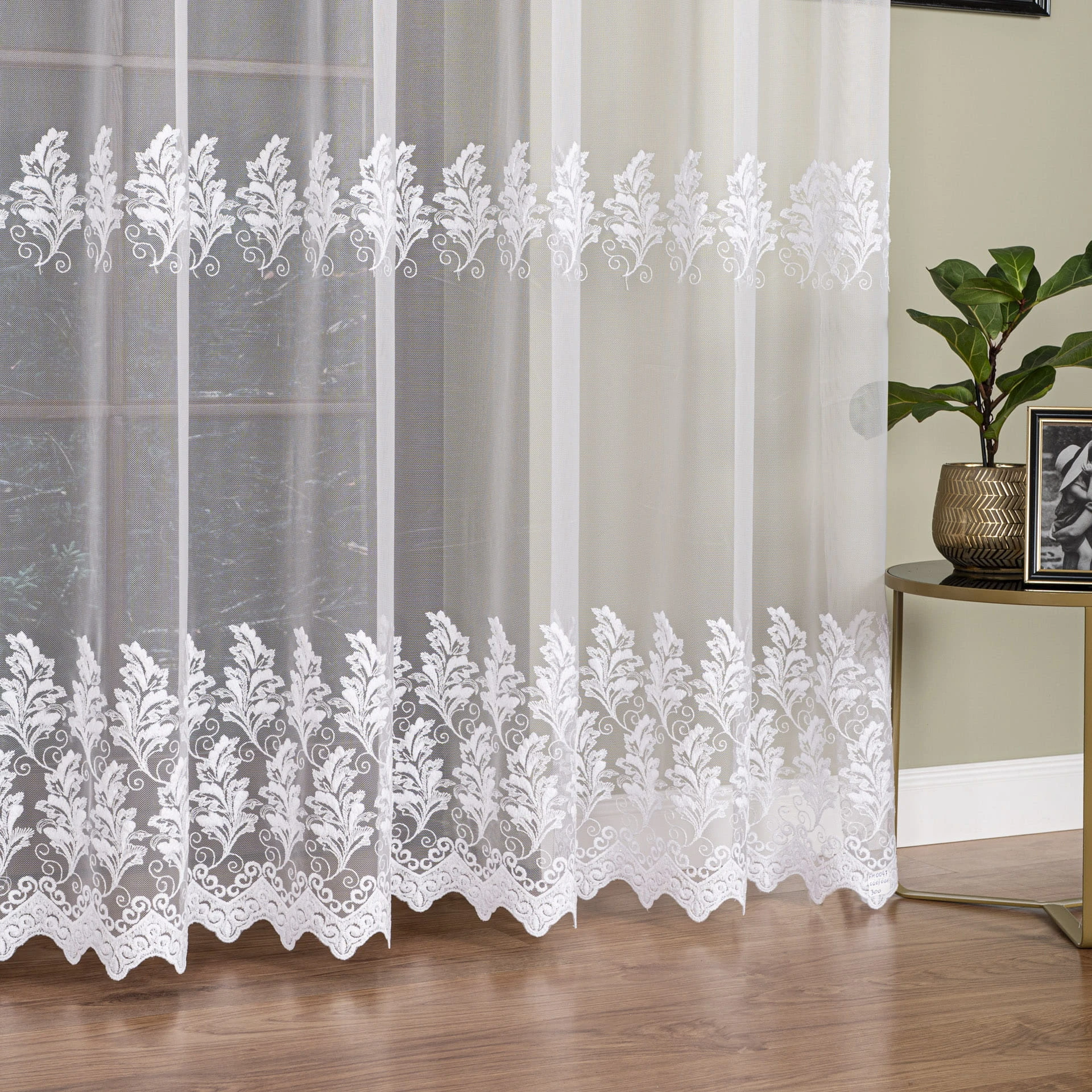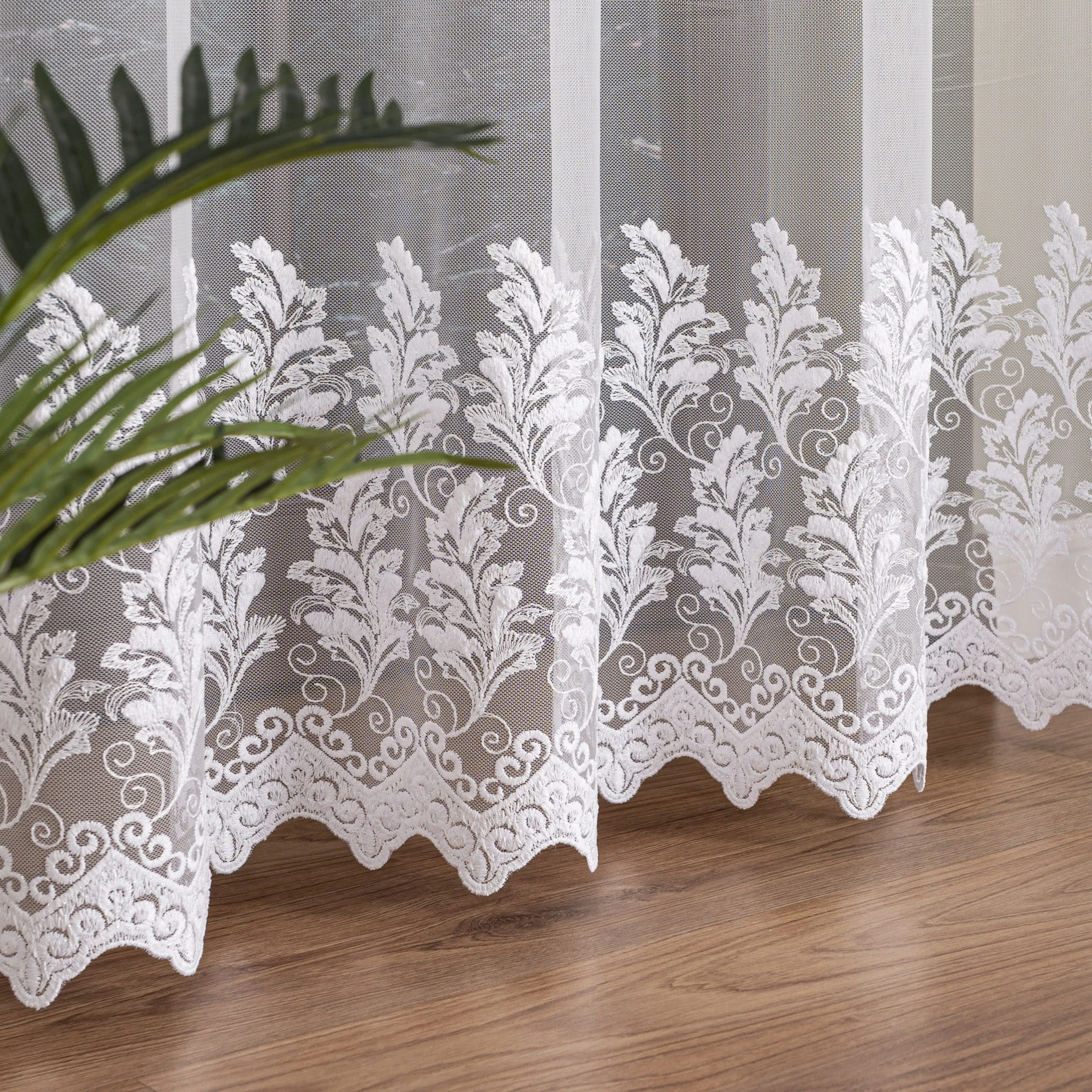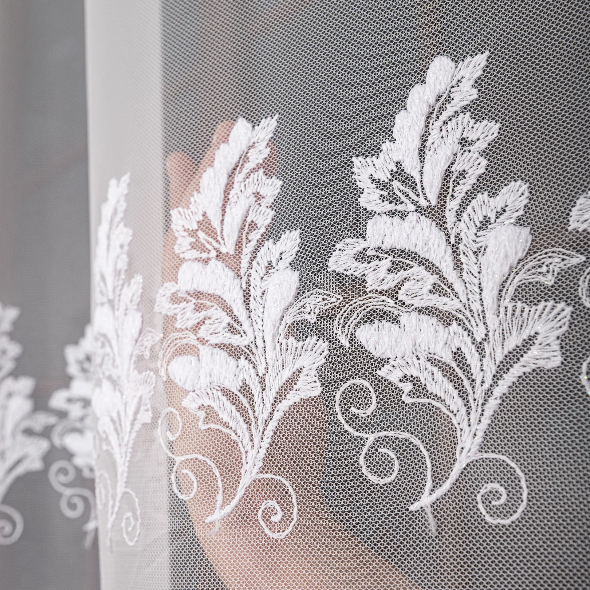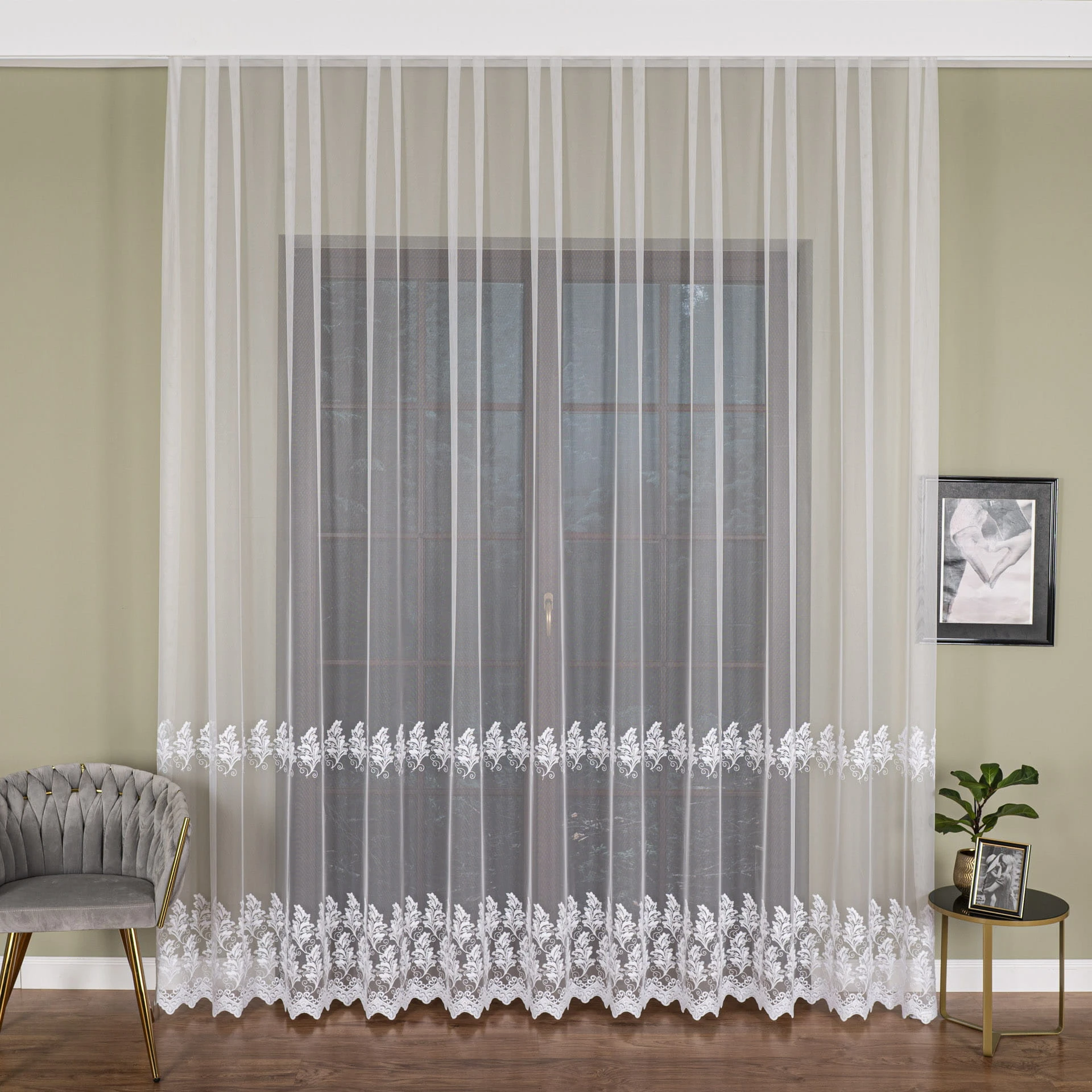 Firanka haftowana ze wzorem pasowym, wysokość 300cm, kolor biały
