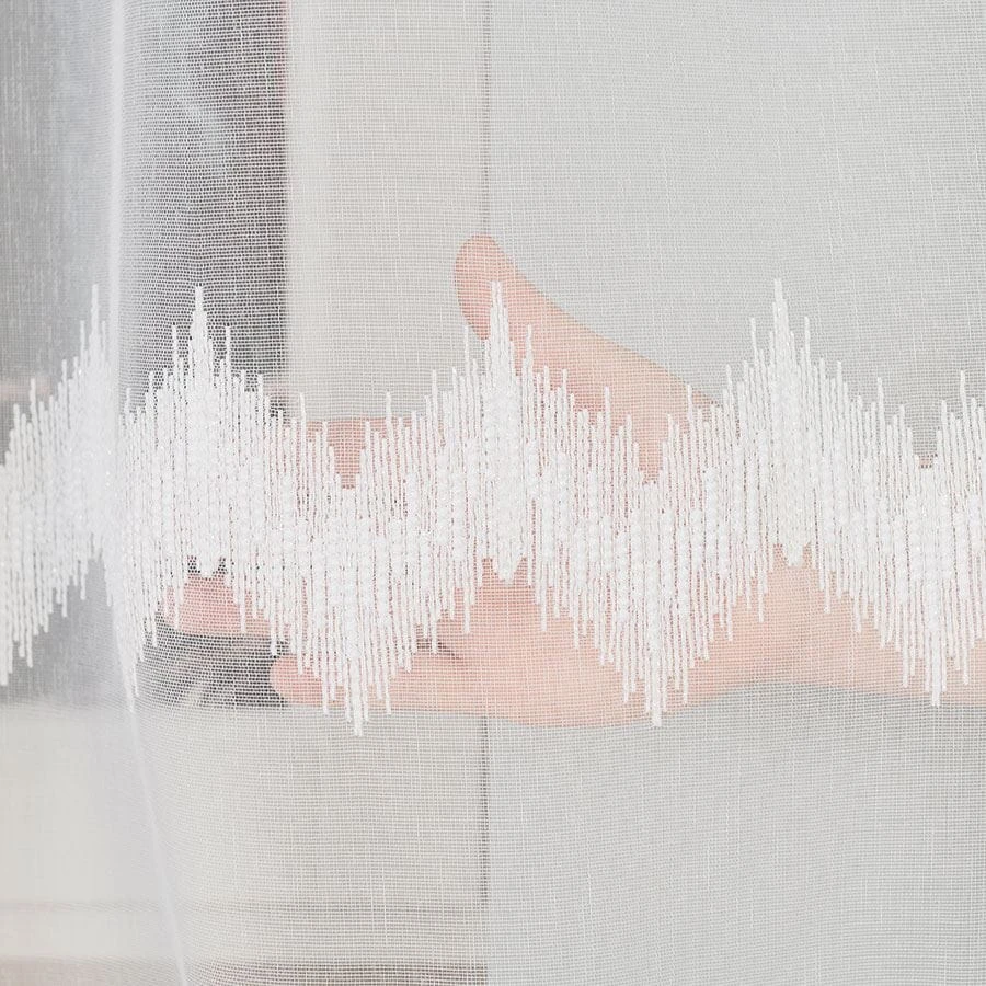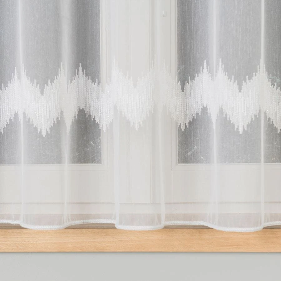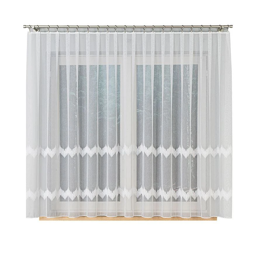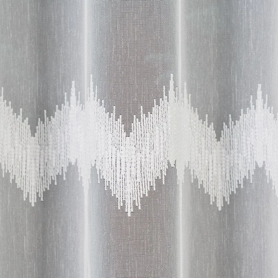 Firanka haftowana ze wzorem pasowym z ołowianką, wysokość 160cm, kolor biały z błyskiem