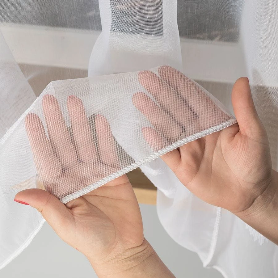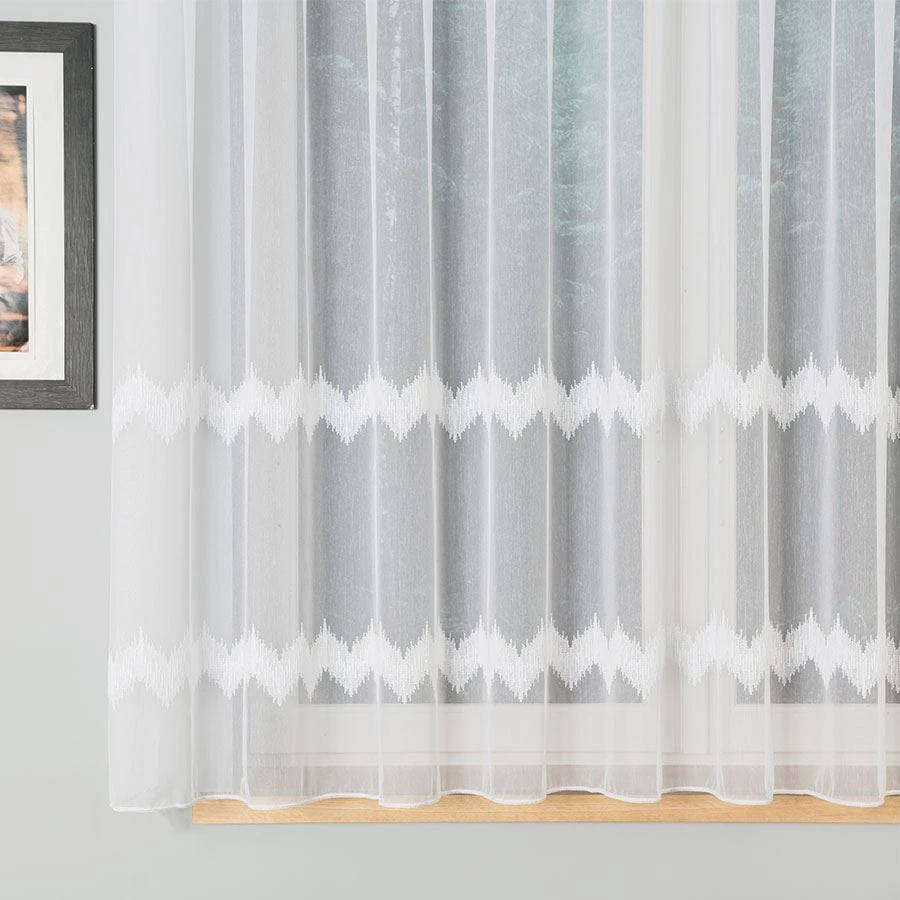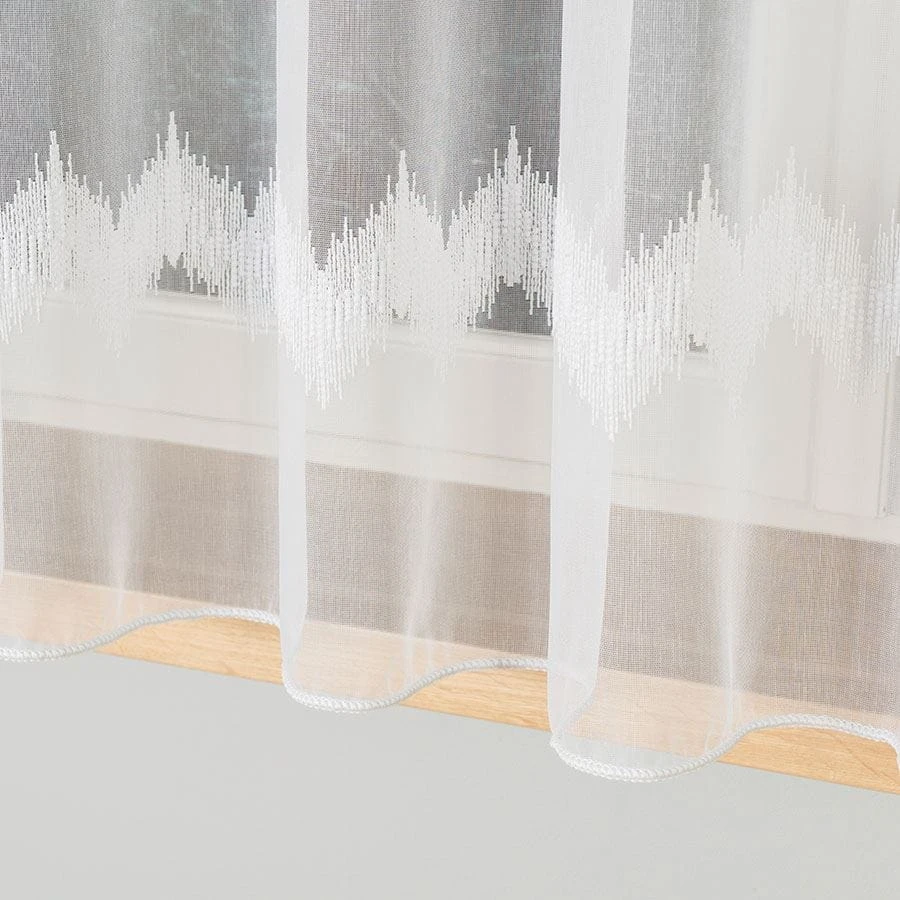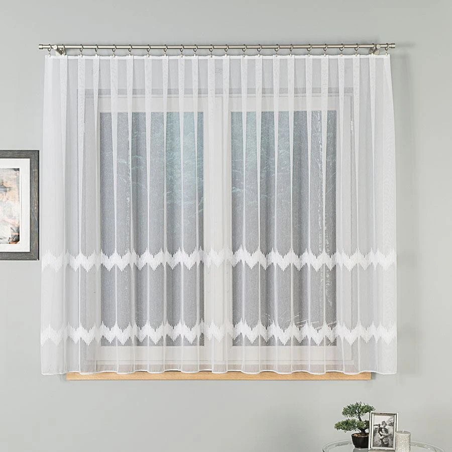 Firanka haftowana ze wzorem pasowym z ołowianką, wysokość 160cm, kolor biały z błyskiem