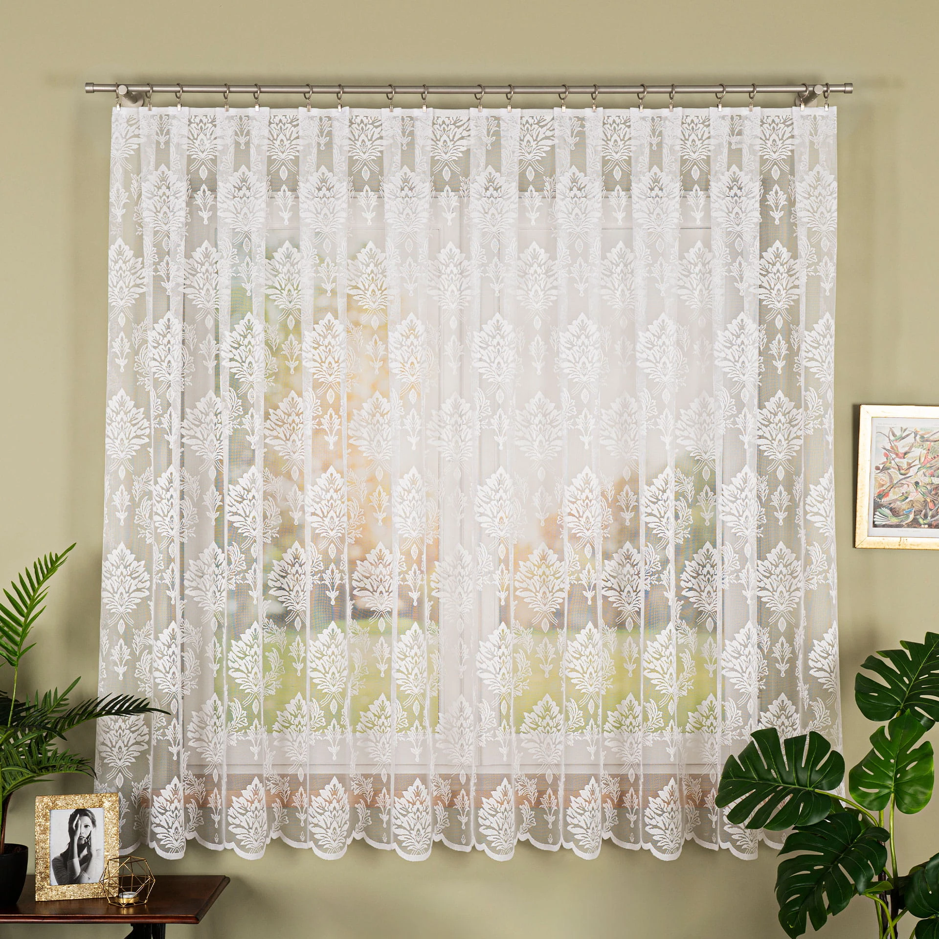 Firanka żakardowa ze wzorem, wysokość 175cm, kolor biały