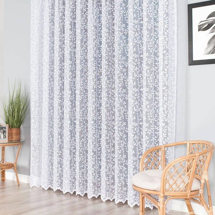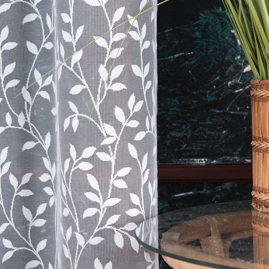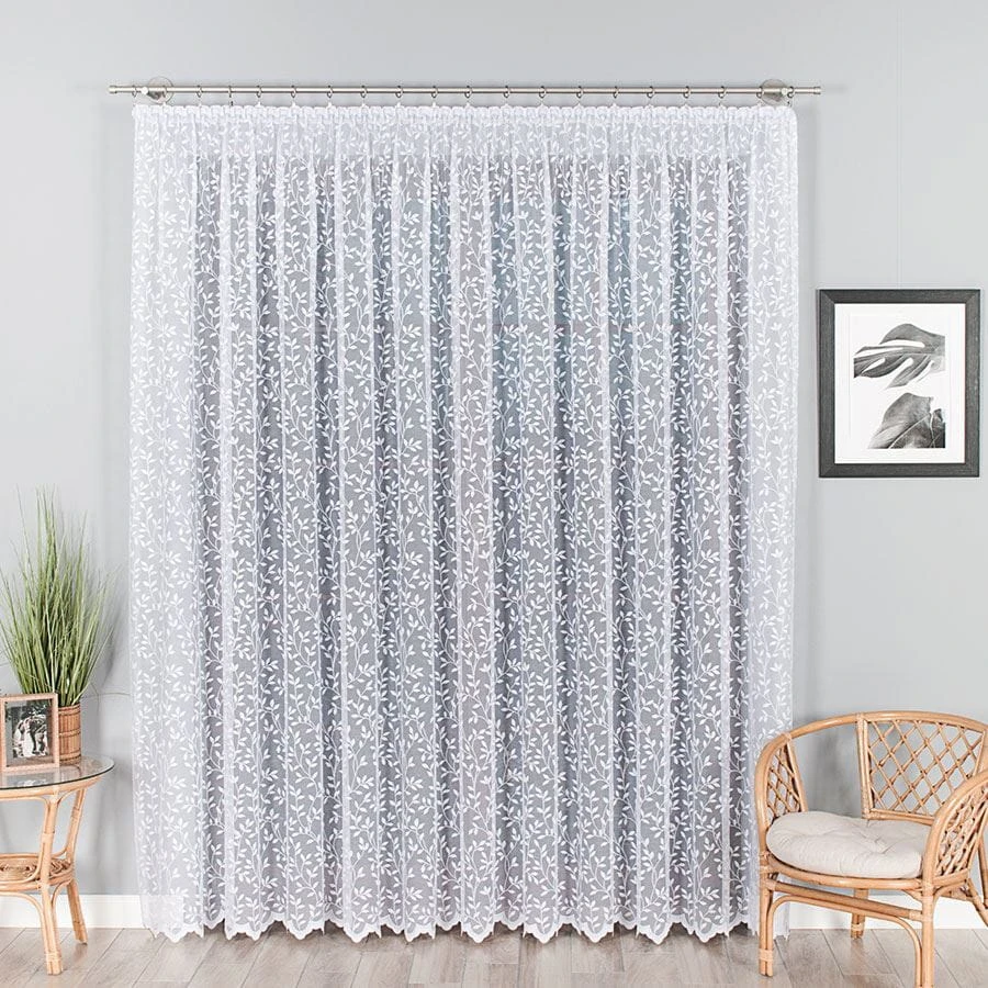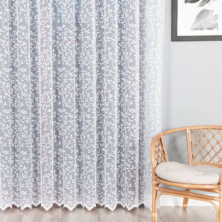 Firanka żakardowa ze wzorem, wysokość 220cm, kolor biały