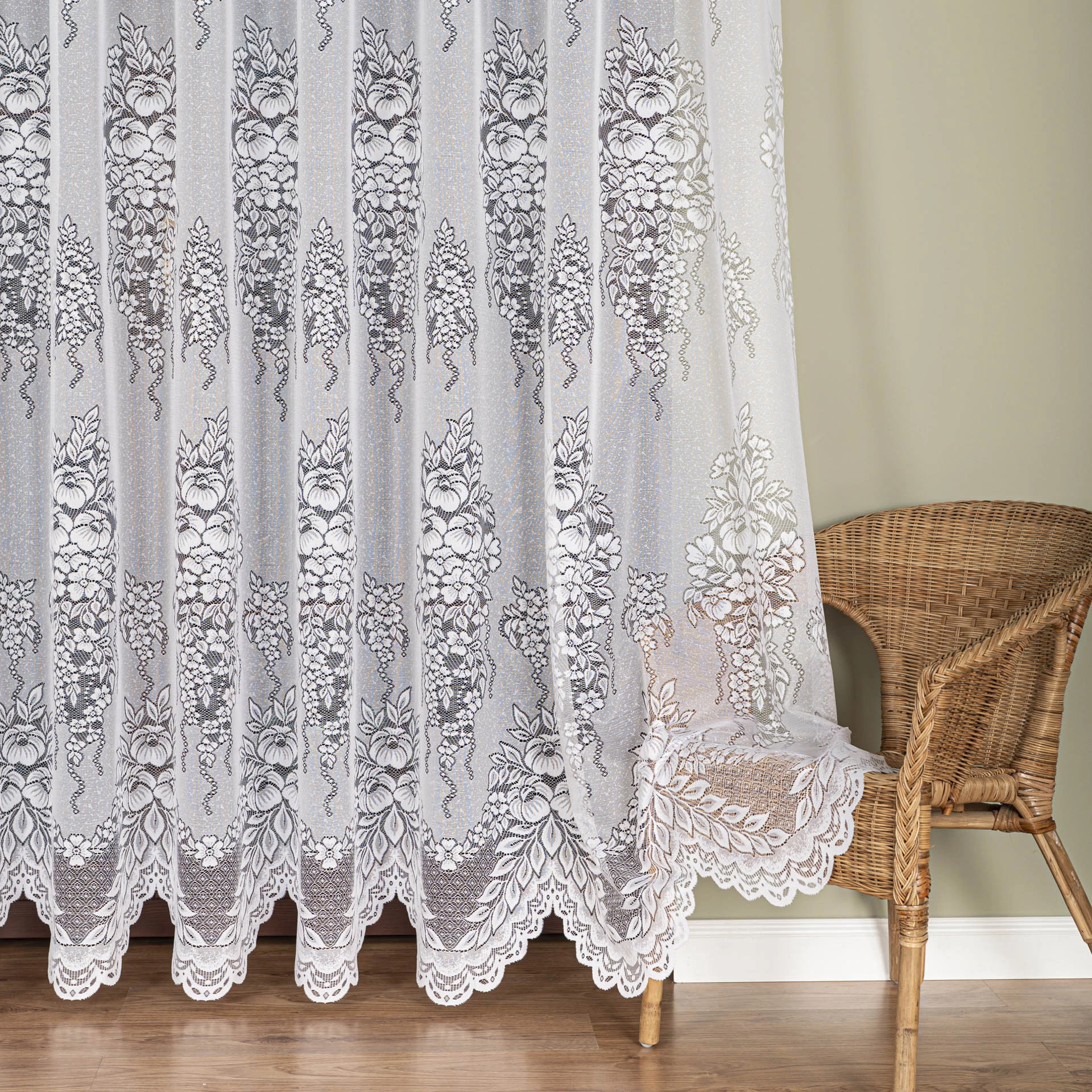 Firanka żakardowa ze wzorem, wysokość 220cm, kolor biały