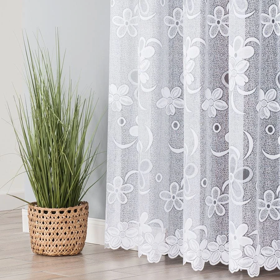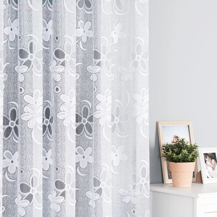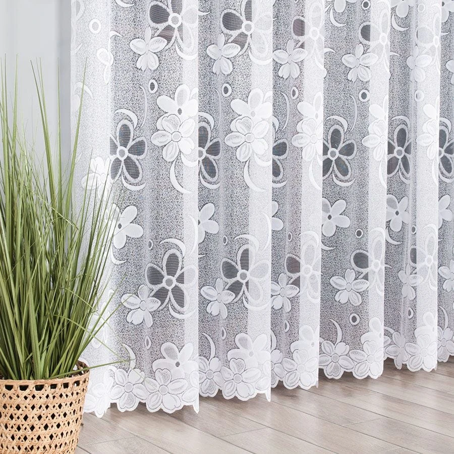 Firanka żakardowa ze wzorem, wysokość 300cm, kolor biały