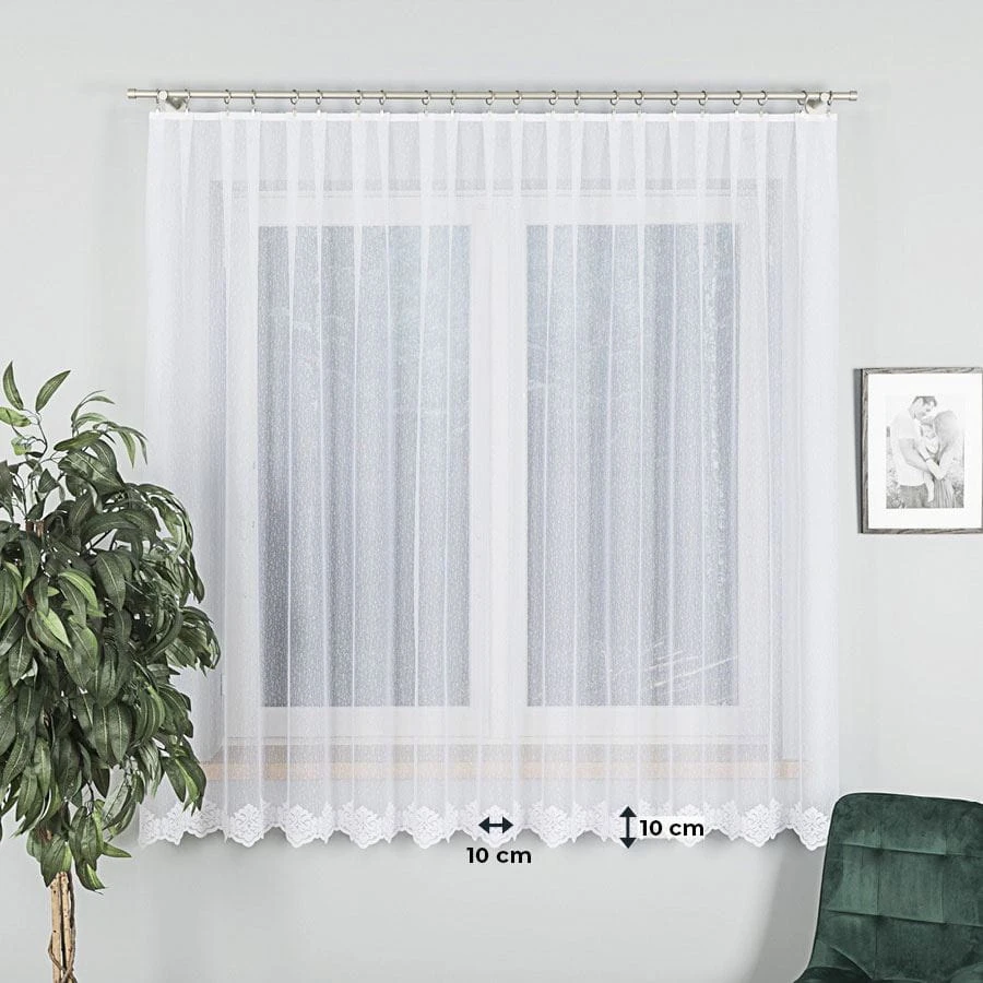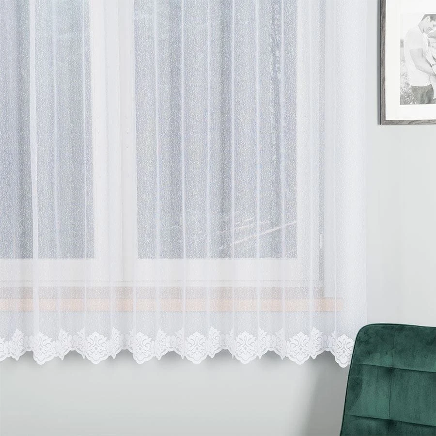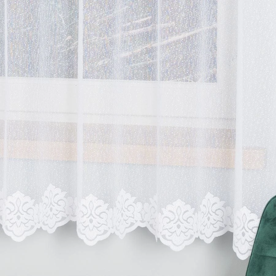 Firanka żakardowa ze wzorem na samym dole, wysokość 180cm, kolor biały