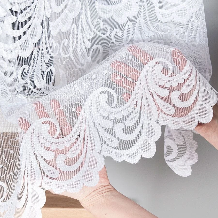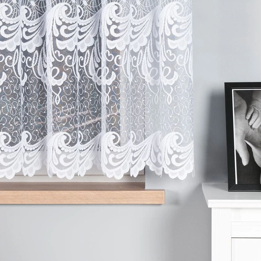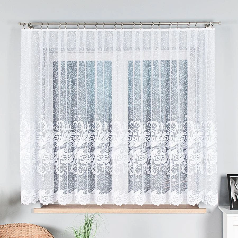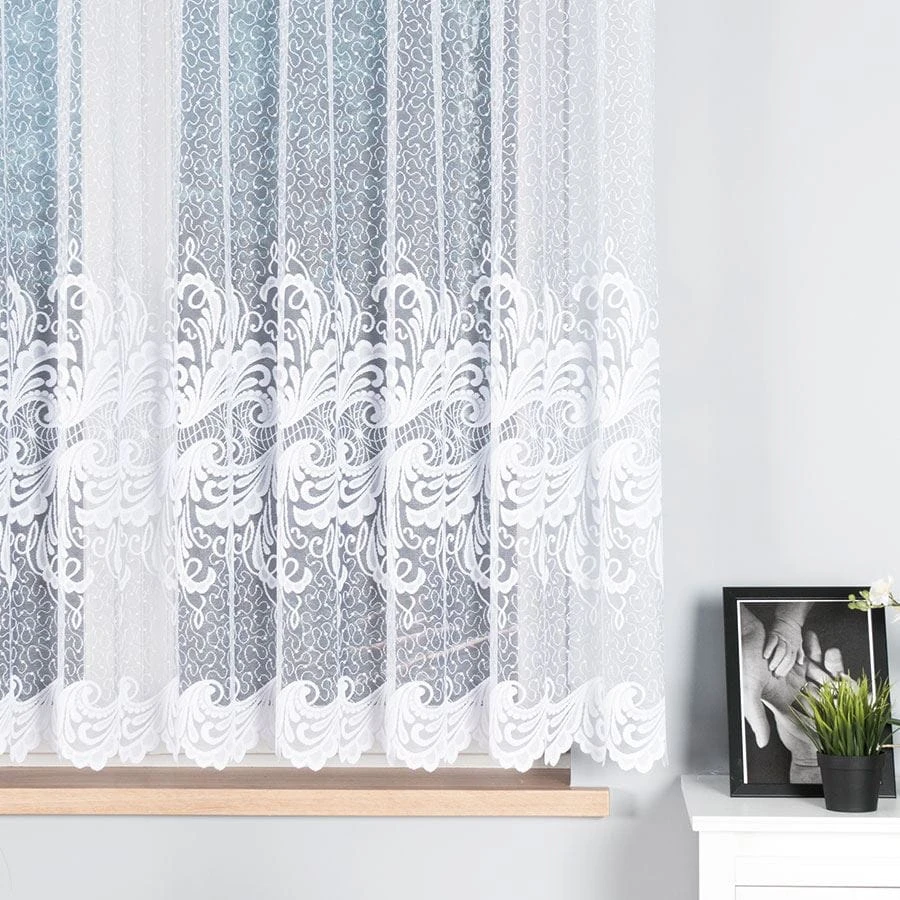 Firanka żakardowa ze wzorem pasowym, wysokość 160cm, kolor biały
