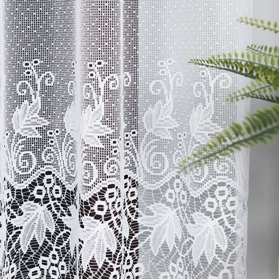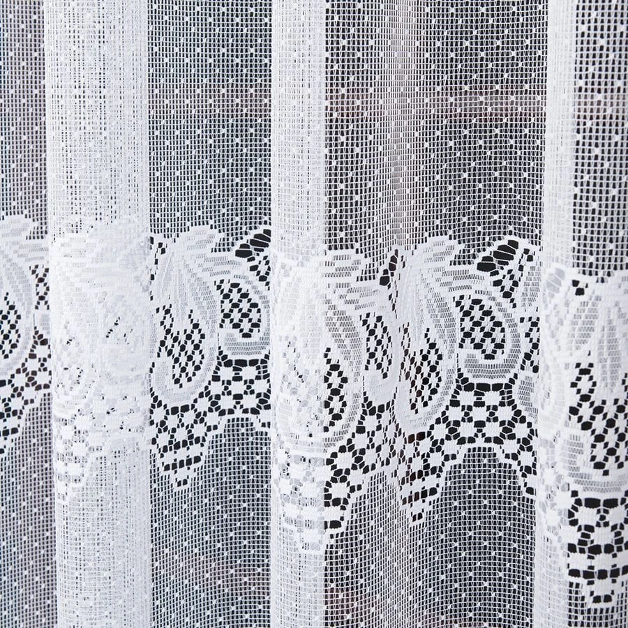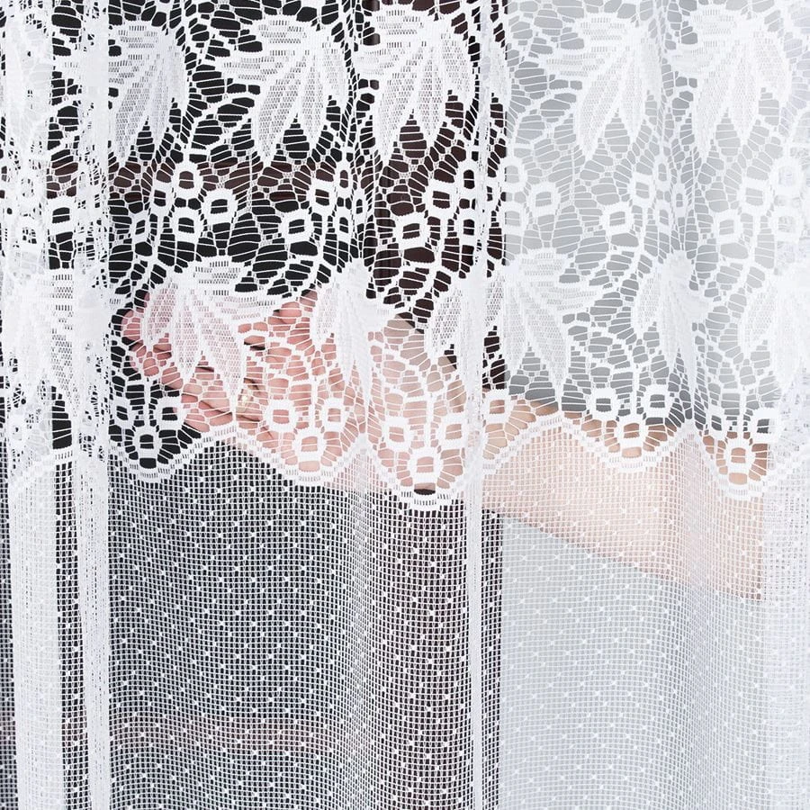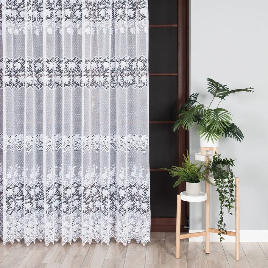 Firanka żakardowa ze wzorem pasowym, wysokość 250cm, kolor biały