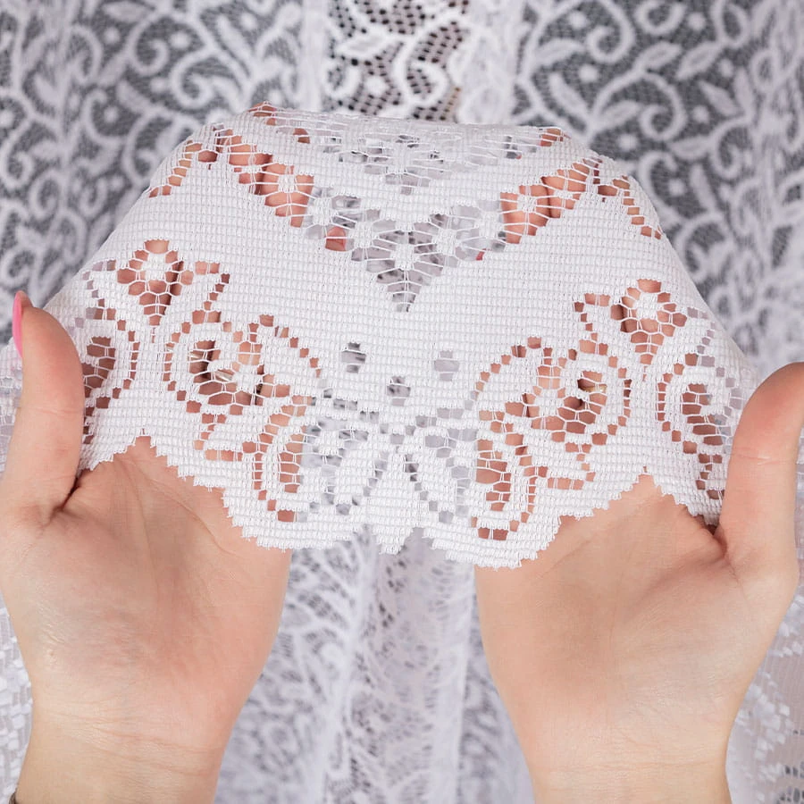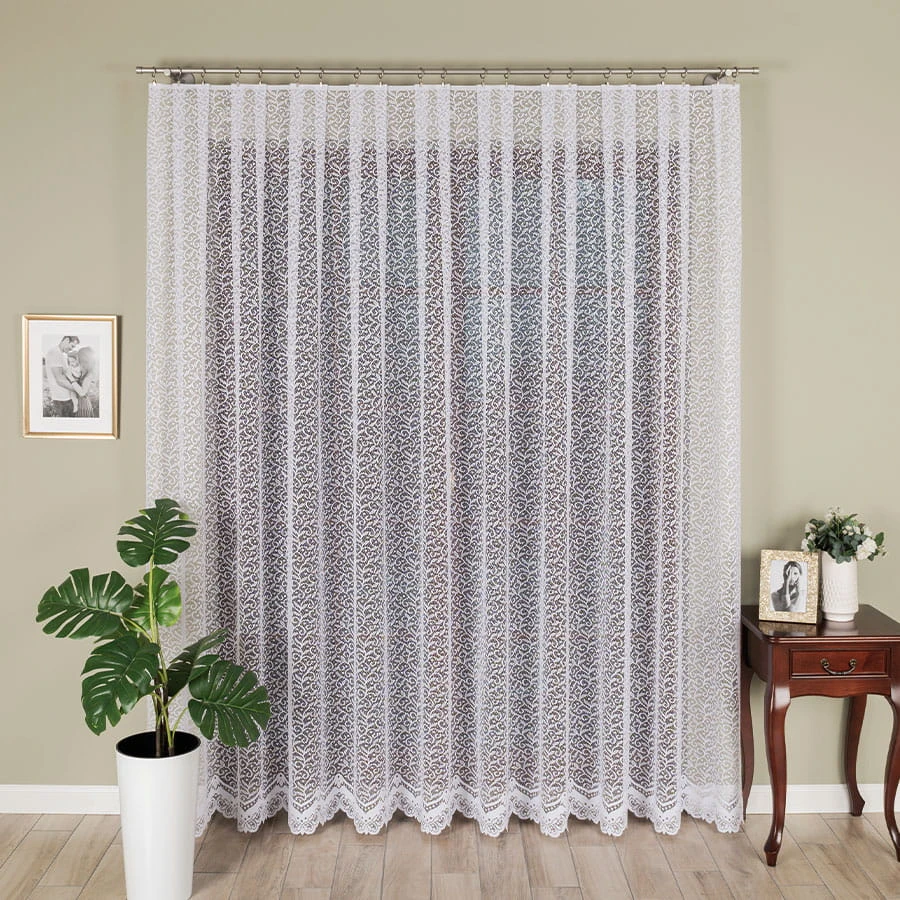 Firanka żakardowa ze wzorem po całości, wysokość 220cm, kolor 001 biały 004542/000/001/000220/1