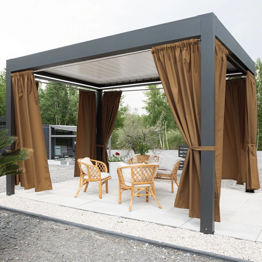 Tkanina ogrodowa Gardenia została wykończona akrylem, dzięki czemu będzie bardziej odporna na czynniki zewnętrzne. Wodoodporne wykończenie chroni przed deszczem oraz wilgocią. Przeznaczona jest do użytkowania na tarasie, pergoli, balkonie czy altanie. Kolekcja tkanin Gardenia składa się z siedmiu kolorów.