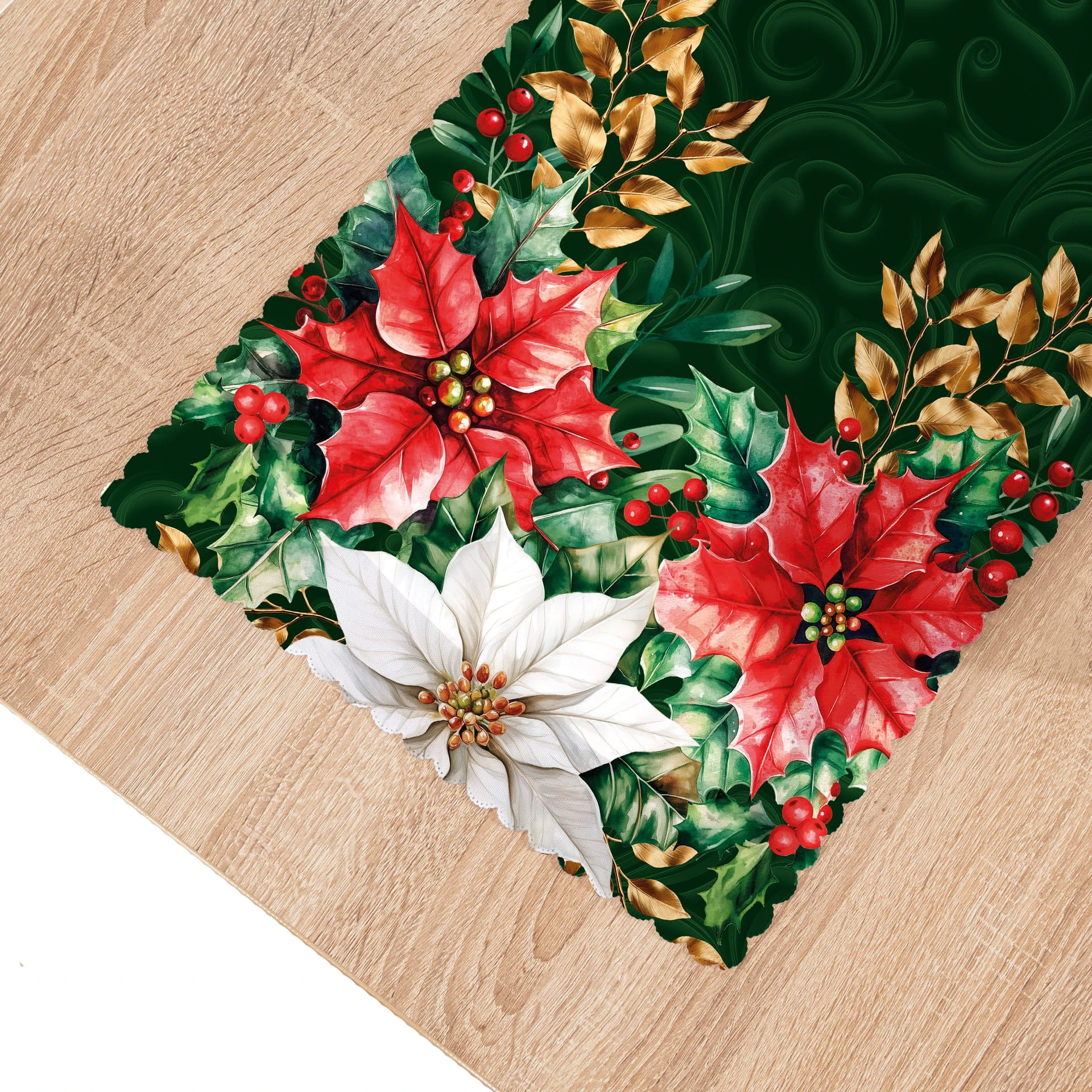 GWIAZDA BETLEJEMSKA Bieżnik NINA WODOODPORNA, 38x160cm, kolor zielony