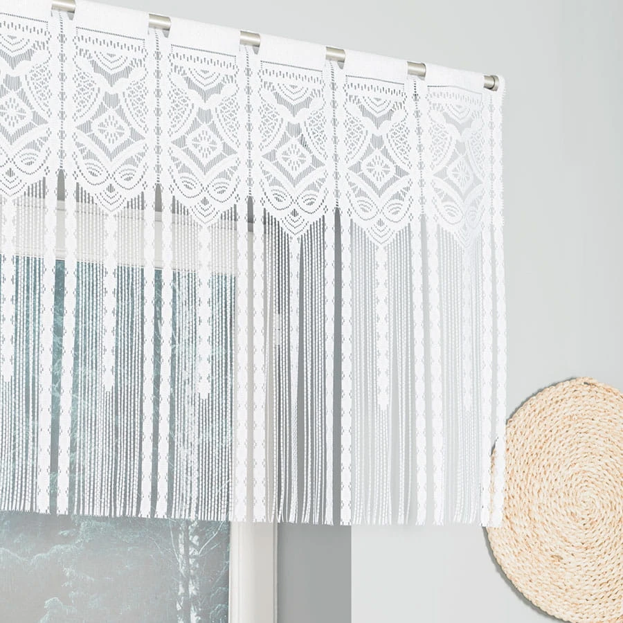 INARA Zazdrostka makramowa żakardowa gotowa, szerokość 180 x wysokość 75cm, kolor 001 biały 001470/ZAZ/001/180075/1