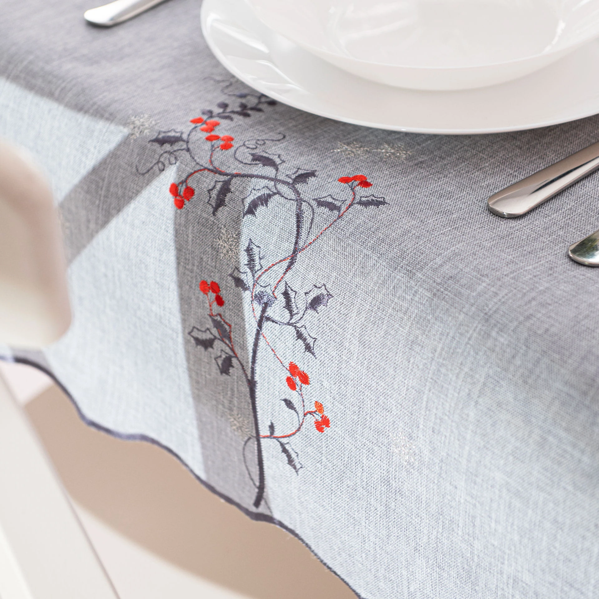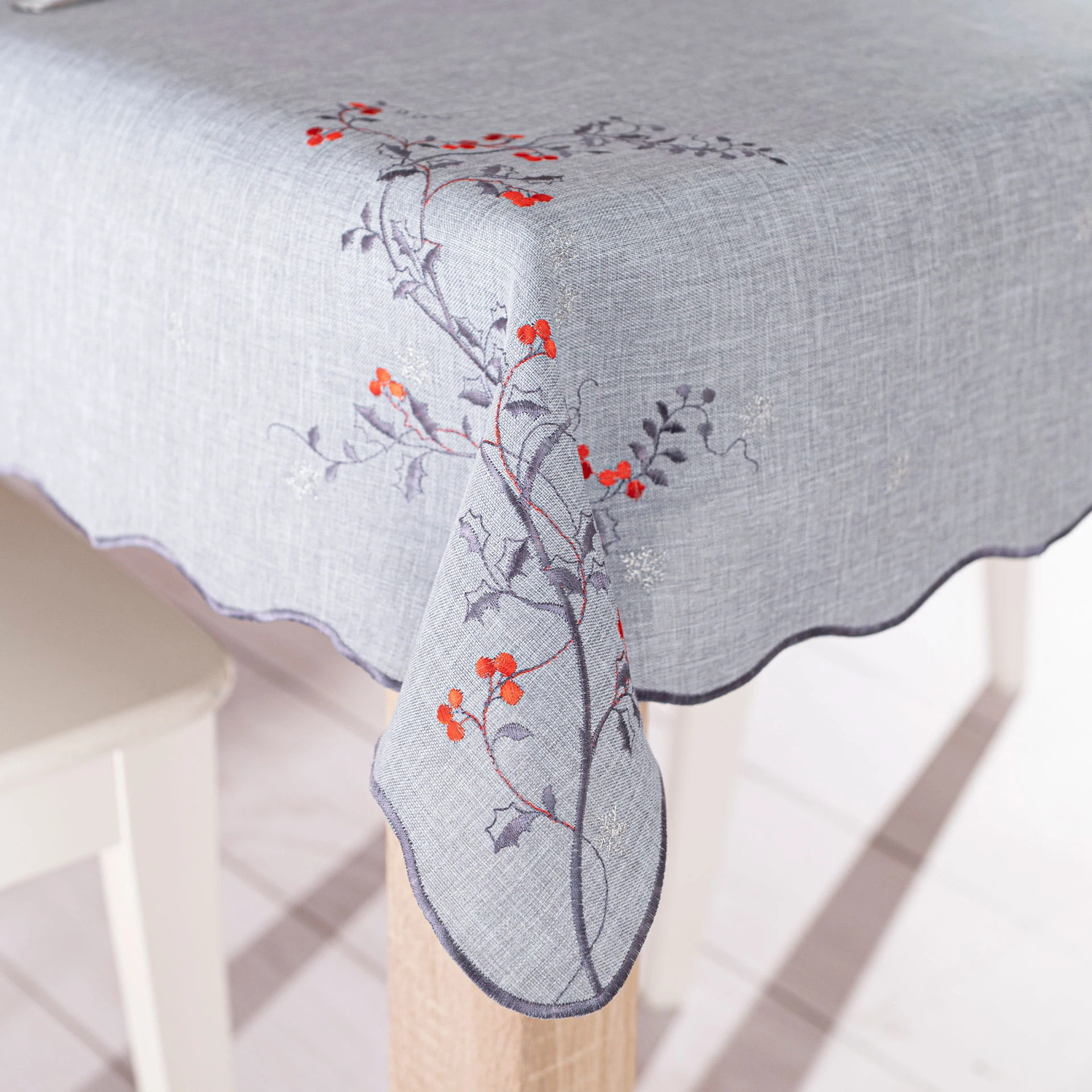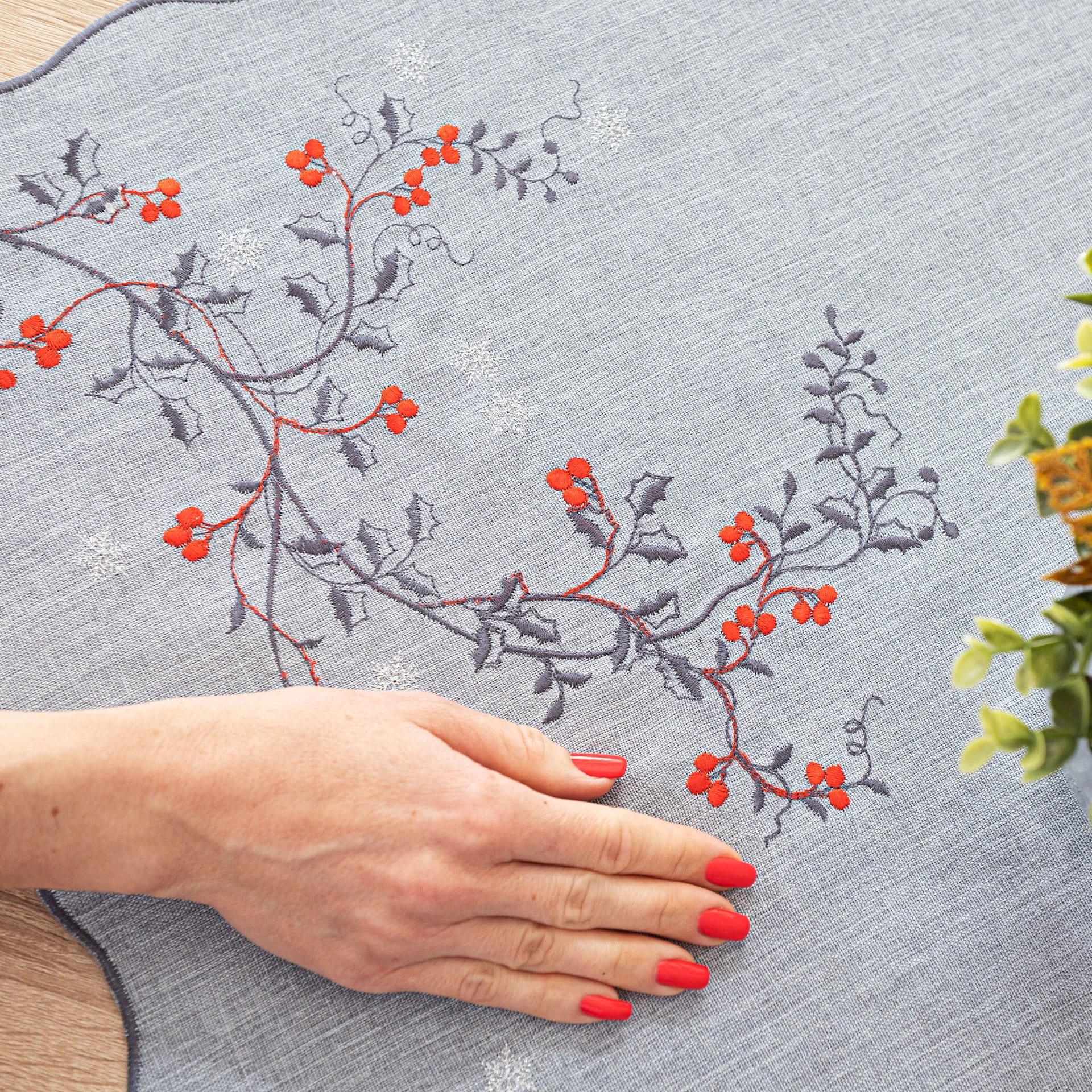 JARZĘBINOWY BLASK Obrus z haftem, szerokość 140cm x wysokość 180cm, kolor szary