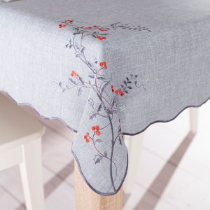 Elegancki i praktyczny obrus wykonany z wysokiej jakości tkaniny poliestrowej. Obrus z dekoracyjnym haftem. Wykończony na brzegach wąskim haftem.