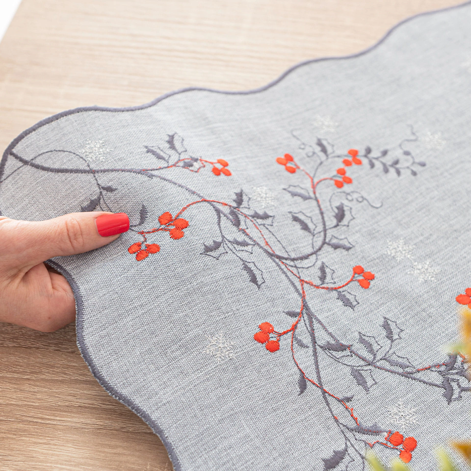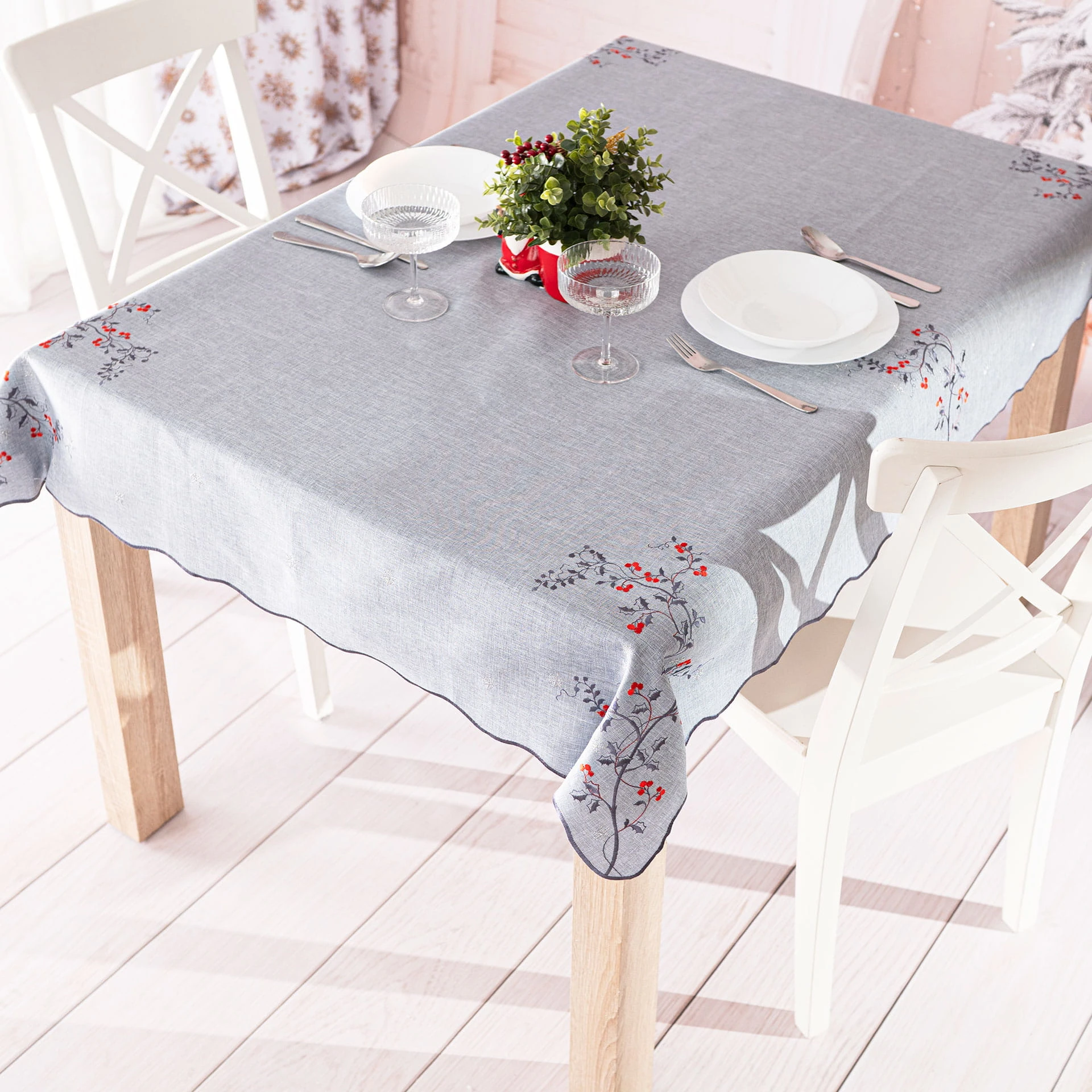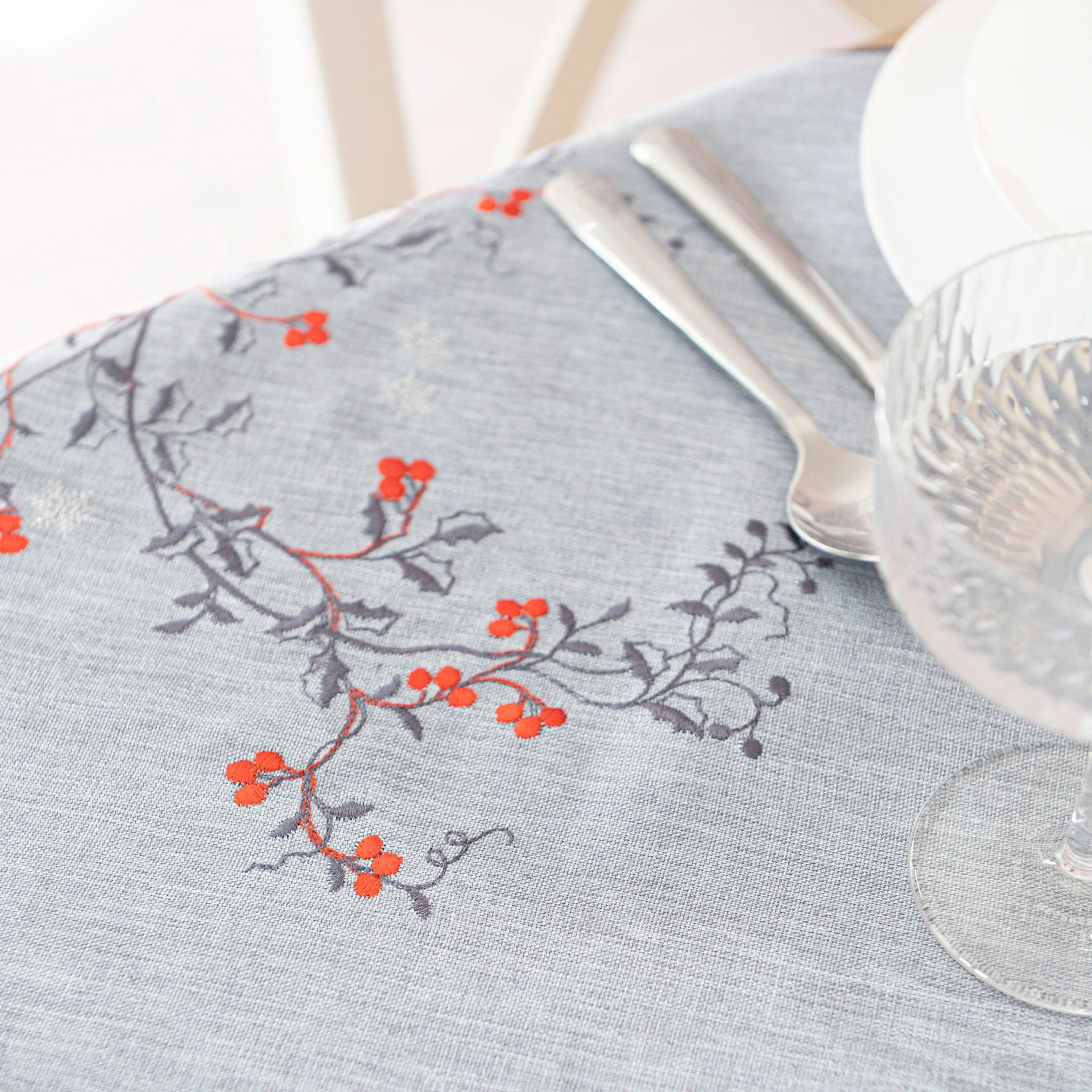 JARZĘBINOWY BLASK Obrus z haftem, szerokość 140cm x wysokość 220cm, kolor szary
