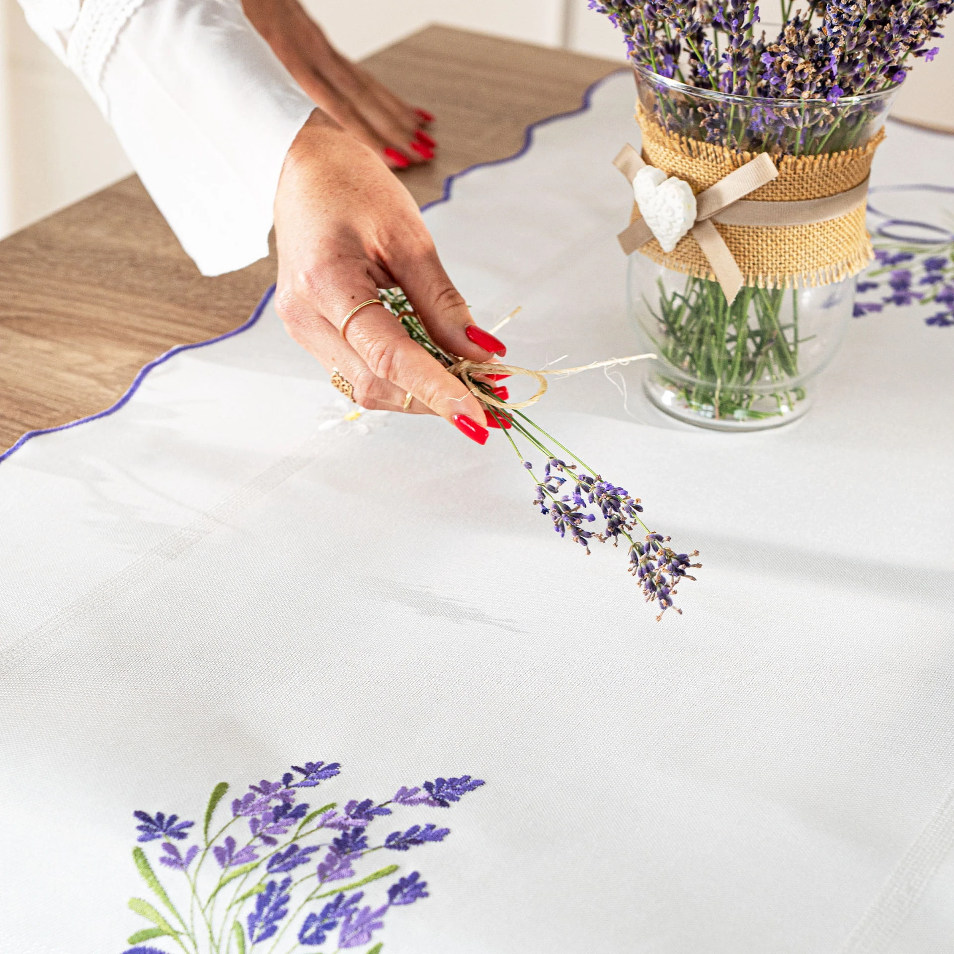 LAWENDOWA POLANA Bieżnik z haftem, szerokość 38cm x wysokość 140cm, kolor biały
