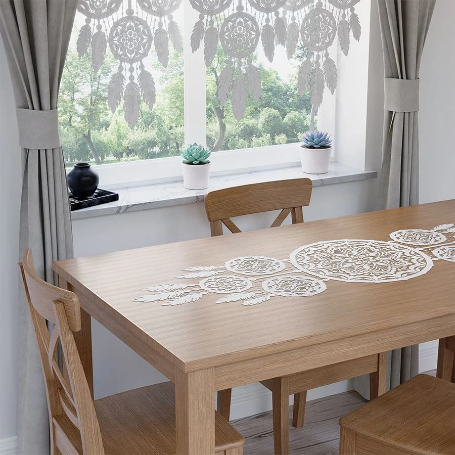 LEA Bieżnik żakardowy gotowy, łapacz snów, szerokość 45 x wysokość 155cm, kolor biały