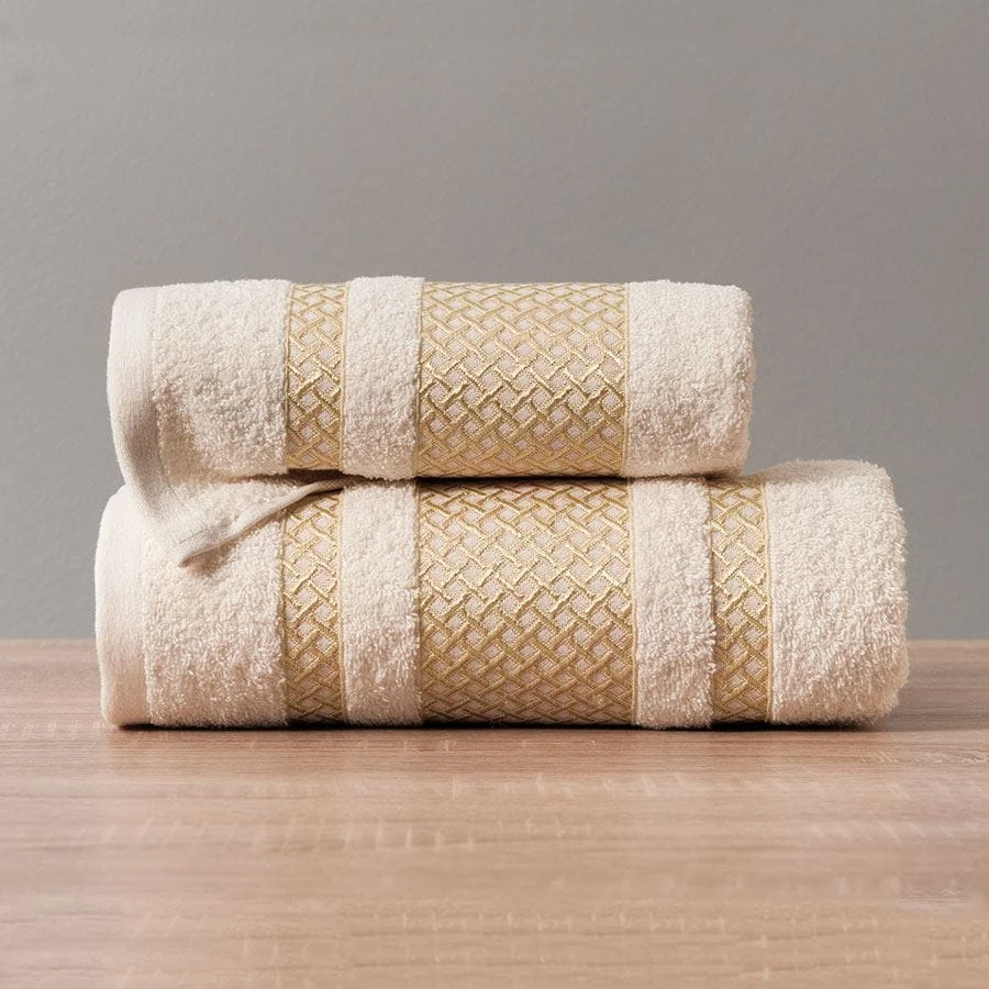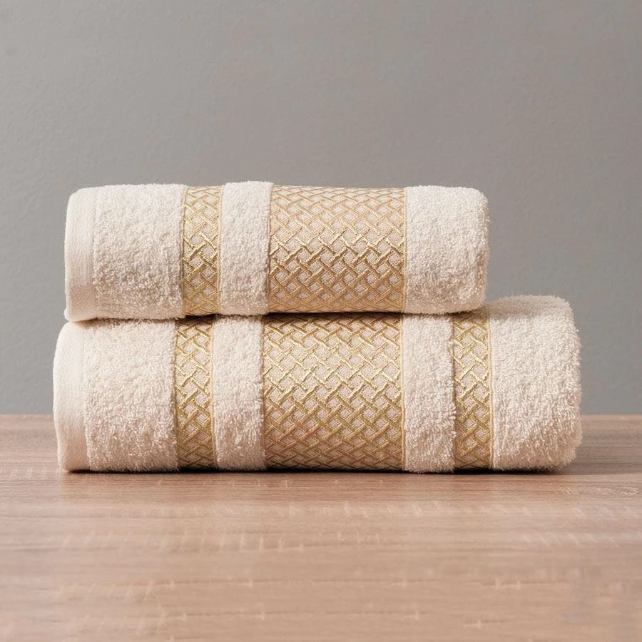 LIONEL Ręcznik, 50x90cm, kremowy ze złotą bordiurą