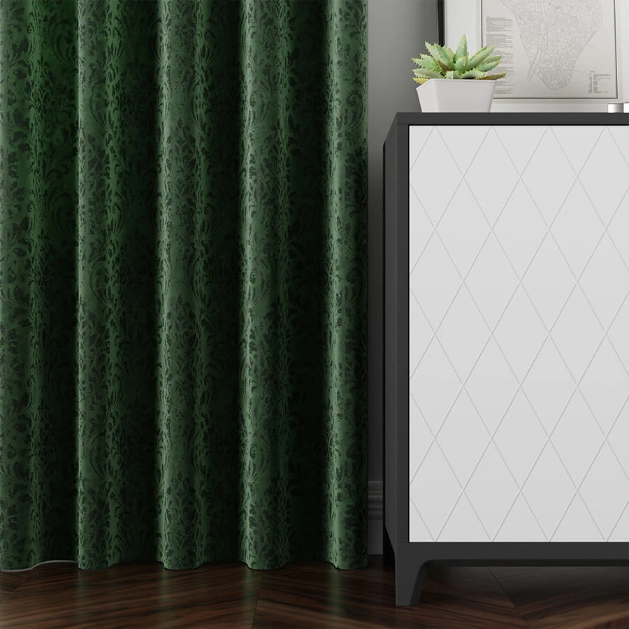 MADELINE Tkanina dekoracyjna, wysokość 300cm, kolorciemny zielony