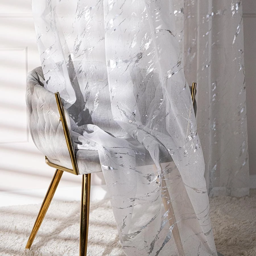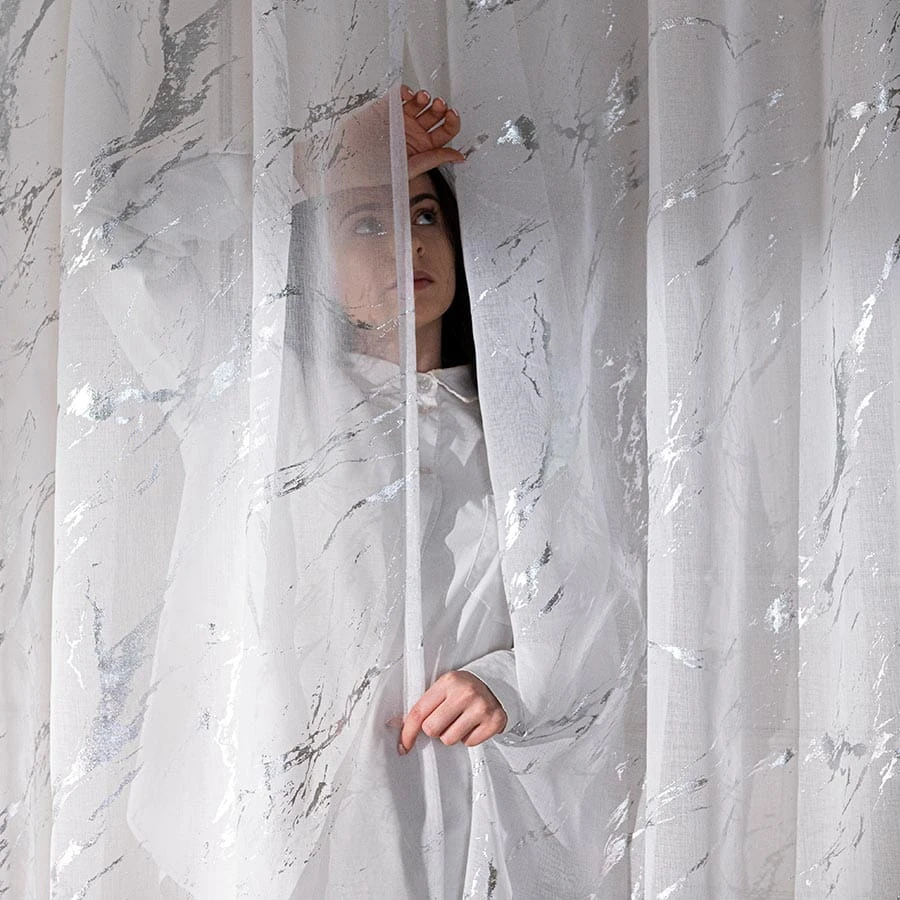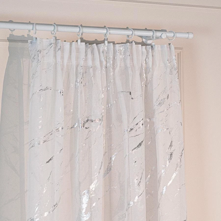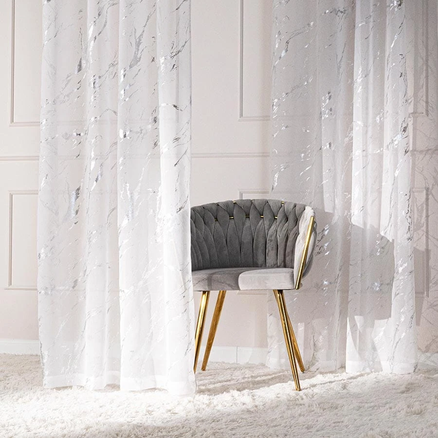 MARMA Firana gotowa na taśmie z ołowianką, szerokość 140cm x wysokość 250cm, kolor 001 biały ze srebrnym zdobieniem 132101/FGT/001/140250/1