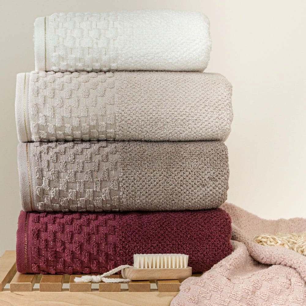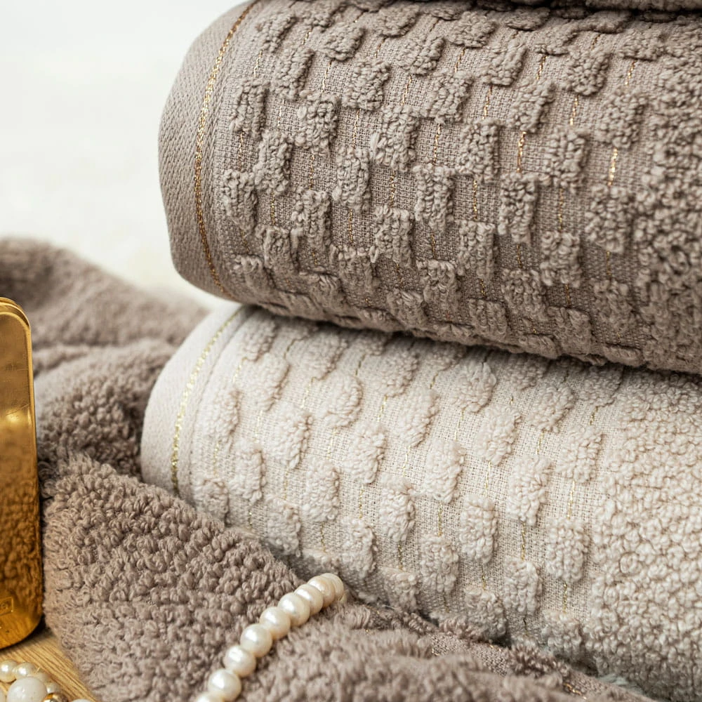 Wyjątkowy ręcznik ze złotym wykończeniem, będzie ozdobą każdej łazienki.