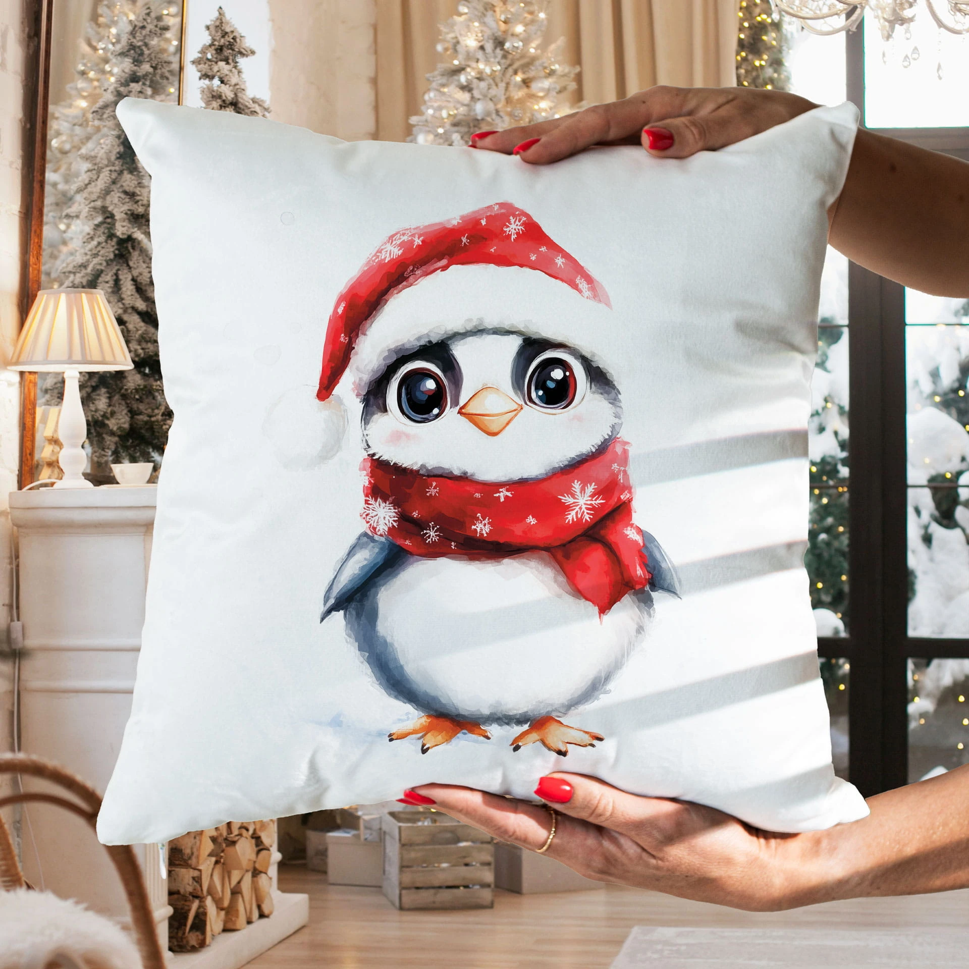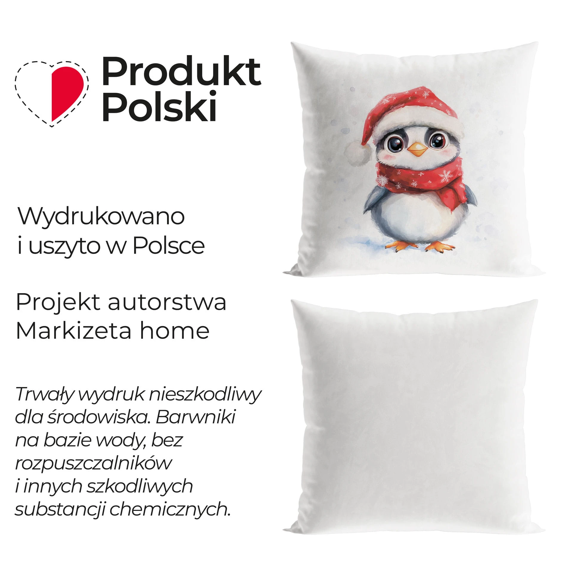 PINGWINEK, BAJKOWE ŚWIĘTA Poszewka dekoracyjna VELVET, 40x40cm, kolor biały